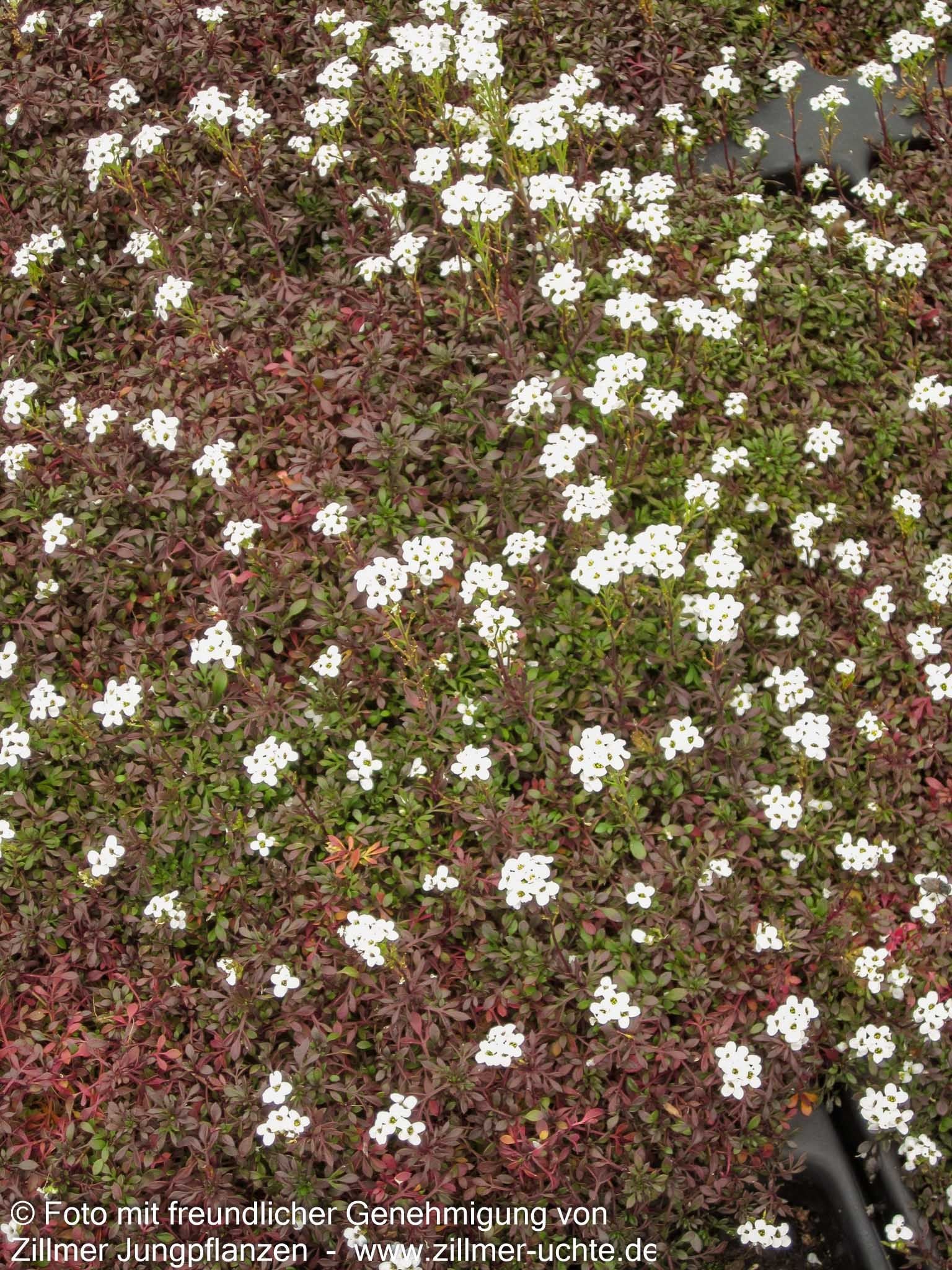 Die Alpen-Gämskresse (Pritzelago alpina ssp. alpina) ist eine bezaubernde heimische Staude, die mit ihren weißen Blüten von Mai bis Juni alpine Atmosphäre in Ihren Garten bringt. Diese kompakte Staude erreicht eine Blattwerkhöhe von nur 5 cm und entwickelt polsterartige Wuchsformen, die sich perfekt als kleinflächiger Bodendecker eignen. Mit ihrem wintergrünen Laub und der außergewöhnlichen Winterhärte bis -28°C ist sie ideal für Steinanlagen, Steinfugen und das Alpinum geeignet. An absonnigen Standorten mit frischen bis feuchten Böden entfaltet diese alpine Schönheit ihre volle Pracht und sollte mit einem Pflanzabstand von 10-15 cm als Gerüststaude in kleinen Tuffs gesetzt werden.