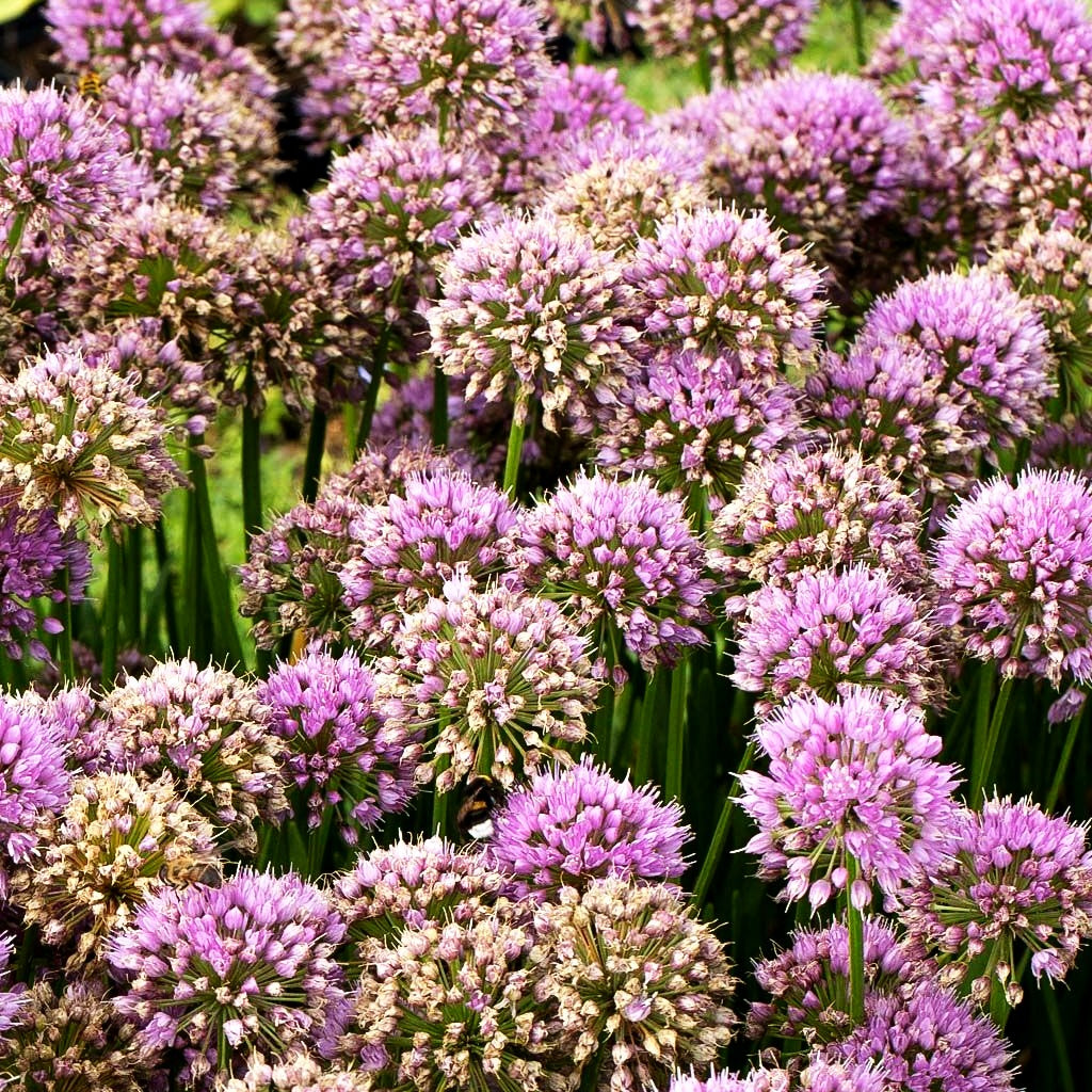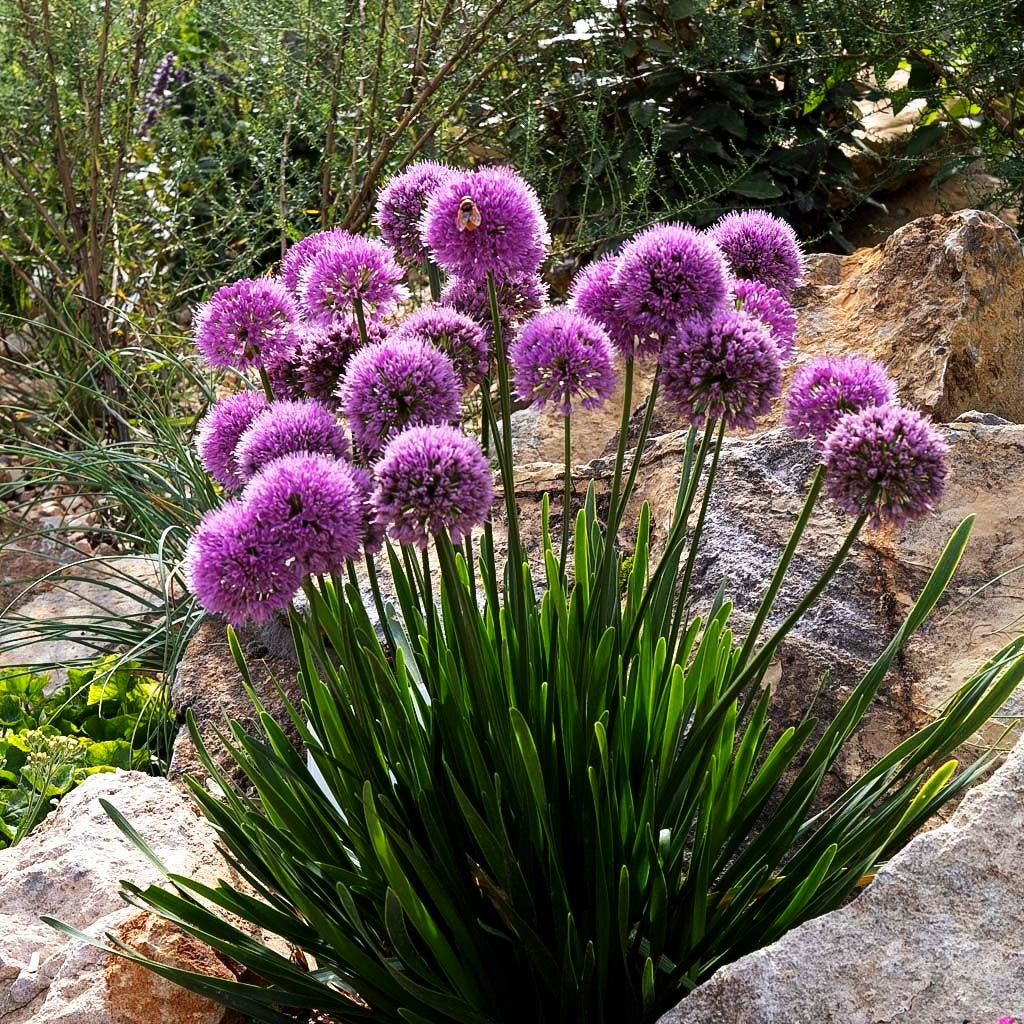 Der Ausdauernde Berg-Lauch (Allium senescens 'Millenium') begeistert von Juli bis September mit seinen großen, rosaroten Blütenköpfen, die auf etwa 40 cm hohen Stielen thronen und Bienen sowie Schmetterlinge magisch anziehen. Diese robuste Staude aus der Familie der Zwiebel- und Knollenpflanzen bildet tiefgrüne, 10-20 cm lange Blätter, die dank ihres wintergrünen Charakters auch in der kalten Jahreszeit attraktiv bleiben. Der anspruchslose Berg-Lauch bevorzugt einen sonnigen Standort auf trockenen Böden und eignet sich hervorragend für die extensive Dachbegrünung. Mit seiner rosaroten Blütenpracht setzt diese pflegeleichte Staude leuchtende Akzente in Steingärten, Beeten und naturnahen Pflanzungen.
