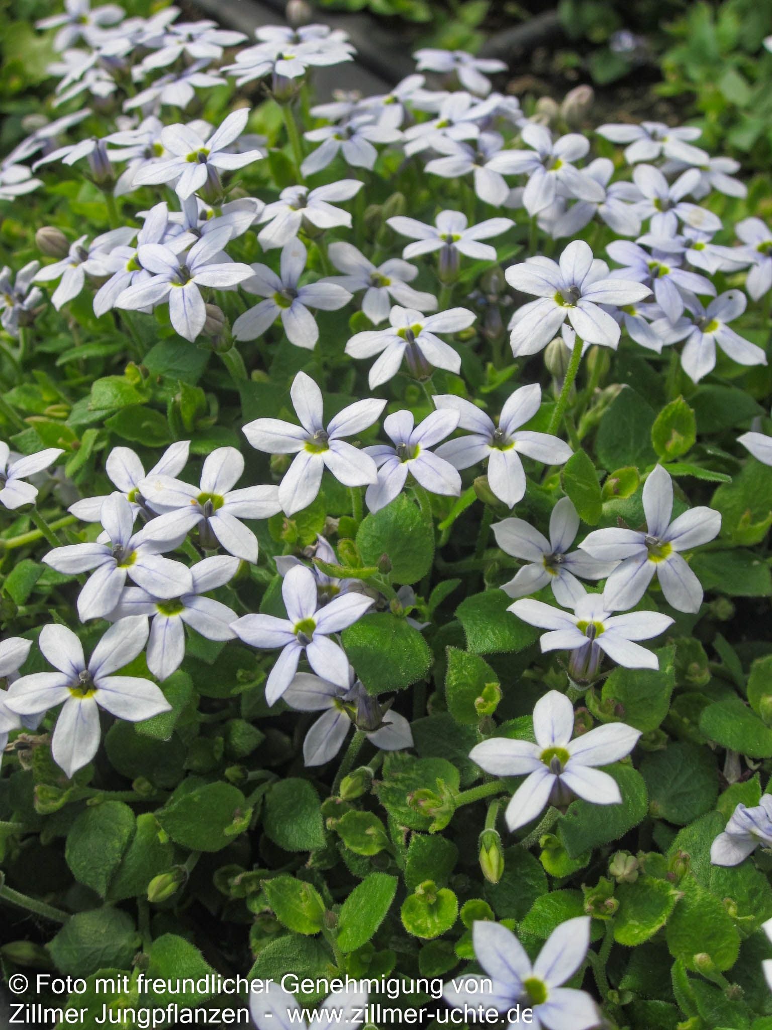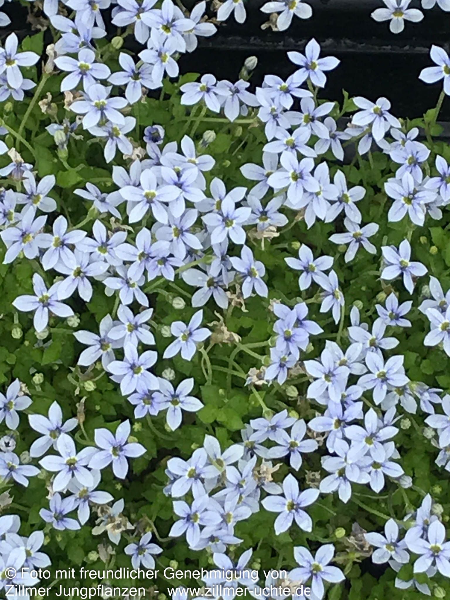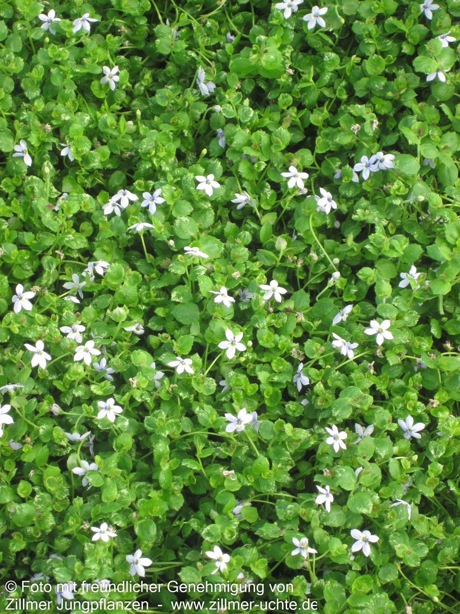 Die Australische Scheinlobelie (Pratia pedunculata) ist eine bezaubernde Staude mit einer außergewöhnlich langen Blütezeit von Mai bis September. Diese kleinflächige Bodendeckerin begeistert mit ihren zarten, hell-blauen einfachen Blüten und ihrem teppichartigen Wuchs. Die kriechende Staude erreicht eine kompakte Blütenhöhe von 3 bis 5 cm und eignet sich perfekt für Steinanlagen. An einem sonnigen Standort mit frischem Boden entwickelt sie ihre dunkel-grünen, wintergrünen Blätter optimal. Mit einem empfohlenen Pflanzabstand von 20 cm und ihrer fremdländischen Herkunft bringt sie exotisches Flair in jeden Steingarten.
