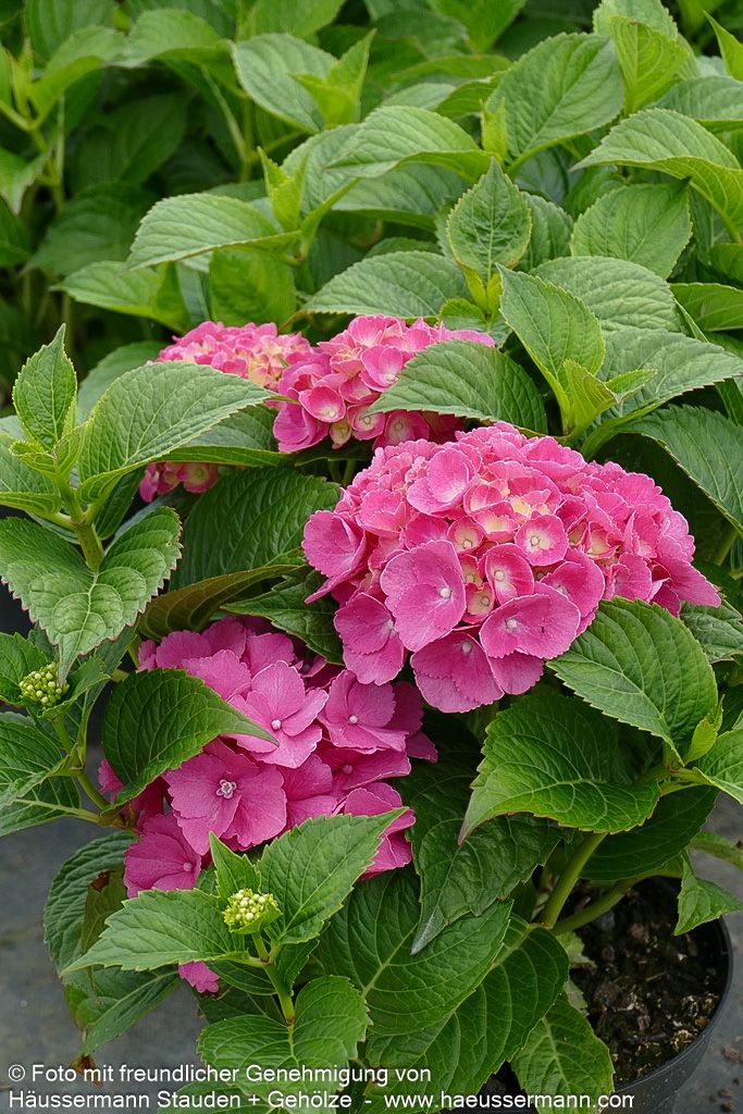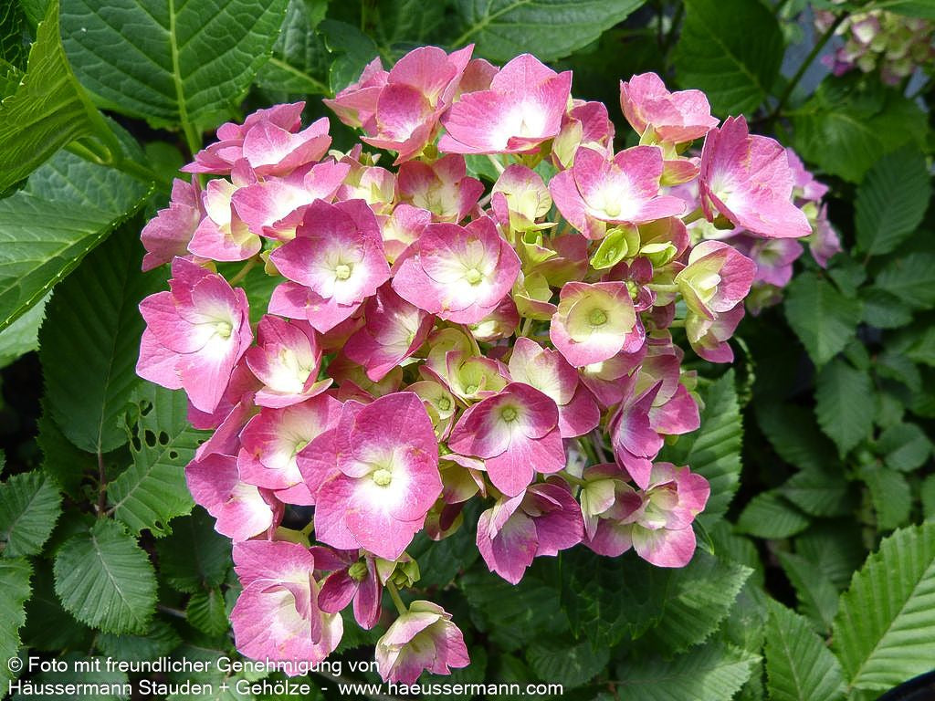 Ball-Hortensie 'Alpenglühen' (Hydrangea macrophylla)