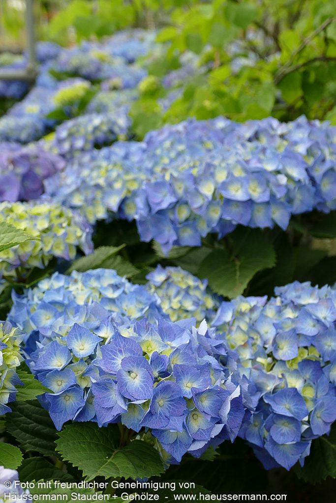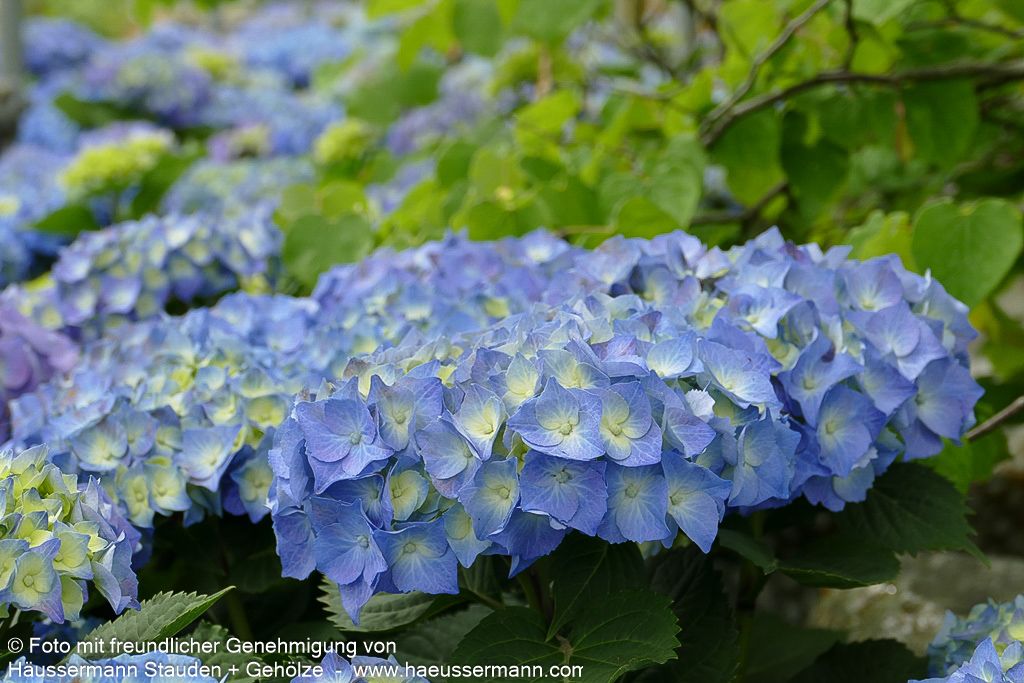 Die Ball-Hortensie (Hydrangea macrophylla 'Bela') ist ein dichtbuschiger, breit aufrecht wachsender Strauch, der als eindrucksvoller Blütenschmuck jeden Garten bereichert. Dieses sommergrüne Laubgehölz erreicht eine kompakte Größe von 1 bis 1,5 Metern und begeistert von Juli bis August mit großen, ballförmigen Blüten in leuchtend blauer Farbe. Die faszinierende Besonderheit dieser Hortensie liegt in ihrer pH-abhängigen Blütenfärbung - je nach Bodenbeschaffenheit variiert das Farbspektrum von intensivem Blau bis zu zartem Rosa. Als anspruchsloses Kleingehölz gedeiht sie optimal an sonnigen, halbschattigen bis wechselsonnigen oder absonnigen Standorten und bevorzugt frische bis feuchte Böden. Diese vielseitige Hortensie eignet sich hervorragend für kleine Gärten im Halbschatten, sowohl in Einzelstellung als auch in Rabatten.