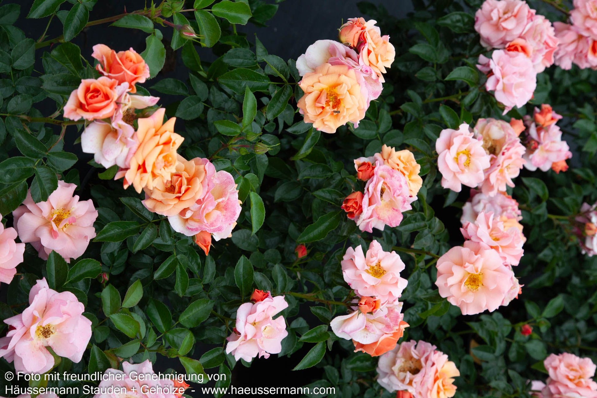 Die Beetrose Rosa 'Aprikola' BT III verzaubert von Juni bis zum ersten Frost mit ihren halbgefüllten Blüten in kräftigem Aprikosengelb bis Rosa und verströmt dabei einen zarten, angenehmen Duft. Diese robuste Beetrose überzeugt mit aufrechtem, buschigem Wuchs und erreicht eine kompakte Höhe von 60-70 cm. Als ADR-Rose 2001 ausgezeichnet, begeistert 'Aprikola' nicht nur mit ihrer außergewöhnlichen gelborangen Blütenpracht, sondern auch mit hervorragender Blattgesundheit und Widerstandsfähigkeit. Die gut gefüllten orangen Blüten machen diese Laubgehölz-Rose zu einem echten Highlight in jedem Rosenbeet, wobei sich etwa 4 Pflanzen pro Quadratmeter optimal entfalten können.