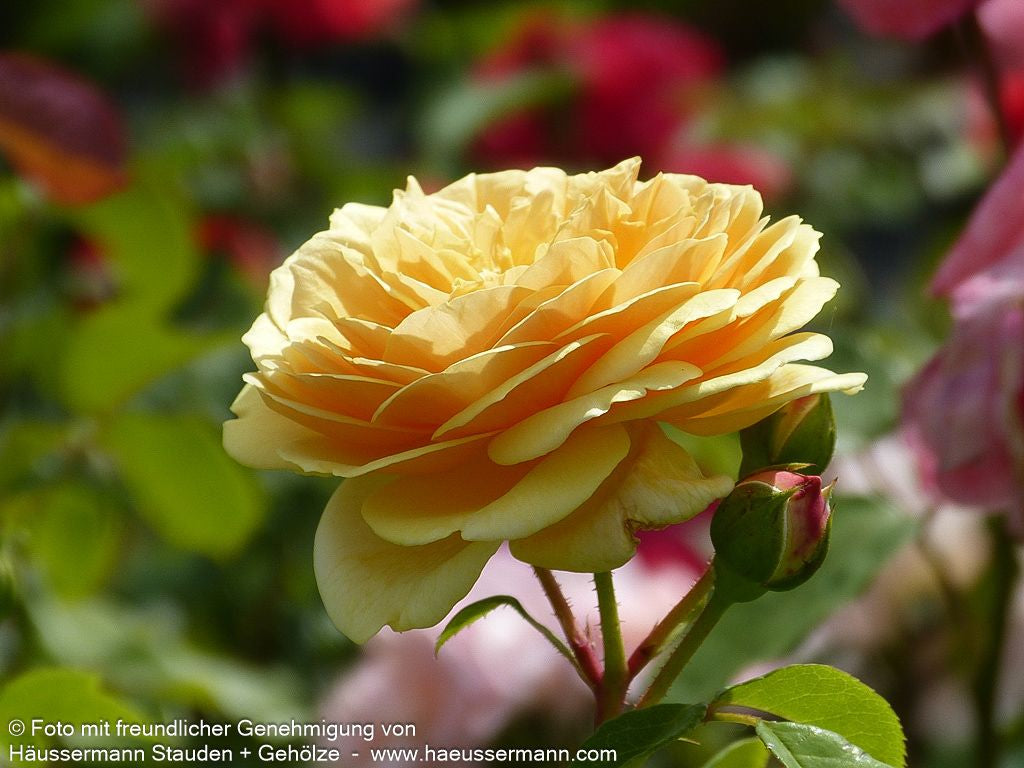 Die Beetrose 'Teasing Georgia' (Rosa 'Teasing Georgia' BT VI) begeistert mit ihren außergewöhnlichen gelben Blüten, die sich elegant nach außen zurückbiegen und zu einem zarten Weiß verblassen. Die gefüllten Blüten verströmen einen intensiven, betörenden Duft und machen diese Rose zu einem wahren Blickfang im Garten. Mit ihrem kräftigen Wuchs erreicht diese beeindruckende Beetrose eine Höhe von 120-160 cm und eignet sich hervorragend als Säulenrose. Das glänzende, gesunde Laub unterstreicht die Schönheit der gelben Blütenpracht und zeigt die robuste Natur dieser besonderen Rose. Diese widerstandsfähige Laubgehölz-Rose ist ideal für Rosenbeete, als Solitärpflanze oder in Gruppen gepflanzt. Ihre Kombination aus Blütenschönheit, intensivem Duft und gesundem Wuchs macht 'Teasing Georgia' zu einer perfekten Wahl für Rosenliebhaber.