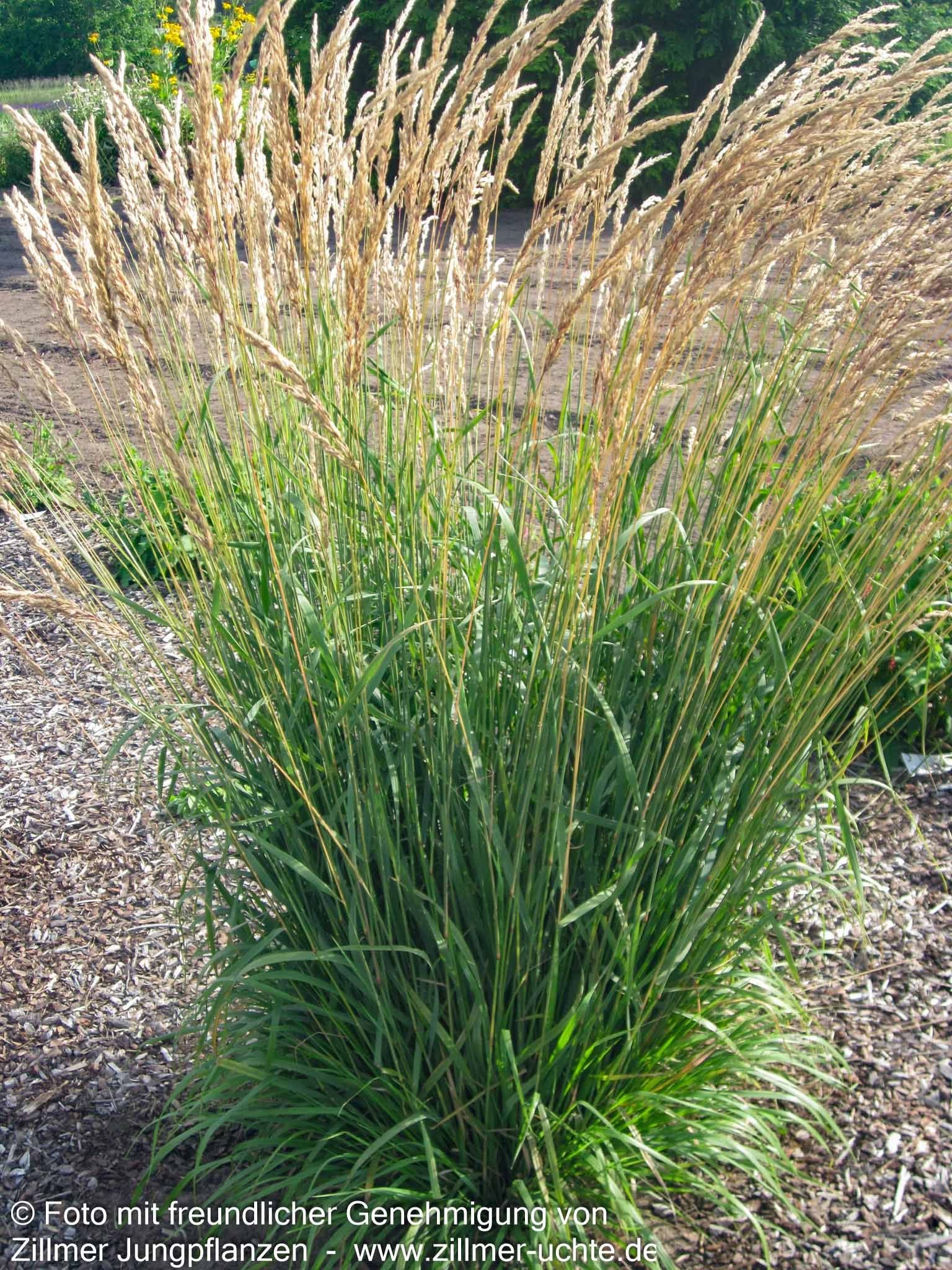 Das Berg-Reitgras (Calamagrostis varia) ist ein wahres Multitalent unter den Gräsern und begeistert mit seiner außergewöhnlichen Anpassungsfähigkeit. Dieses robuste Ziergras entwickelt attraktive gelbgrüne Blüten, die von Juli bis September eine Höhe von 80-100 cm erreichen und bis in den Herbst hinein dekorativ bleiben. Die sommergrünen Blätter bilden einen eleganten 70 cm hohen Horst und schaffen eine natürliche Gartenstruktur. Besonders beeindruckend ist die Vielseitigkeit dieses Grases: Es gedeiht sowohl an trockenen als auch an feuchten Standorten und ist sogar einer der wenigen Stauden, die trotz Wurzeldruck von Birken prächtig wachsen. Für sonnige Freiflächen und Gehölzränder ist das Berg-Reitgras die perfekte Wahl und löst selbst schwierige Gartensituationen mit Bravour.