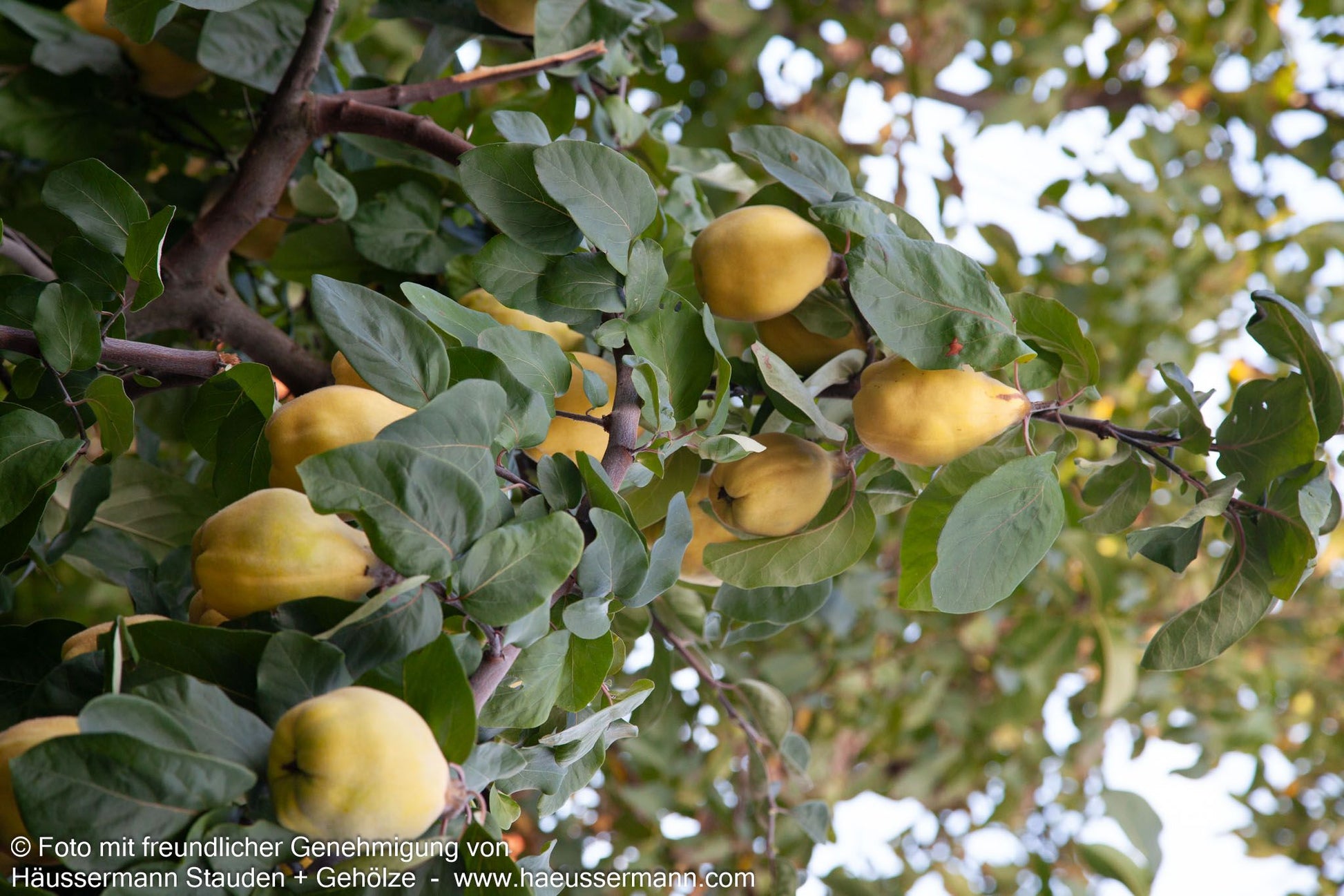 Die Birnen-Quitte (Cydonia 'Bereczki-Birnenquitte') ist eine außergewöhnliche Obstsorte aus Ungarn, die mit ihren großen, birnenförmigen Früchten jeden Gartenliebhaber begeistert. Diese vielseitig verwendbare Laubgehölz-Sorte entwickelt einen starken, aufrechten Wuchs und belohnt Sie im Herbst mit einer reichen Ernte. Die gelben, birnenförmigen Früchte reifen im Oktober und sind perfekt für die Verarbeitung zu köstlichen Gelees, Marmeladen oder Kompotten geeignet. Nach der Ernte im September entwickeln die Früchte bis November ihr volles Aroma. Entdecken Sie diese besondere Quitten-Sorte und bereichern Sie Ihren Garten um dieses wertvolle Kernobst, das nicht nur durch seinen Geschmack, sondern auch durch seine dekorative Wirkung überzeugt.