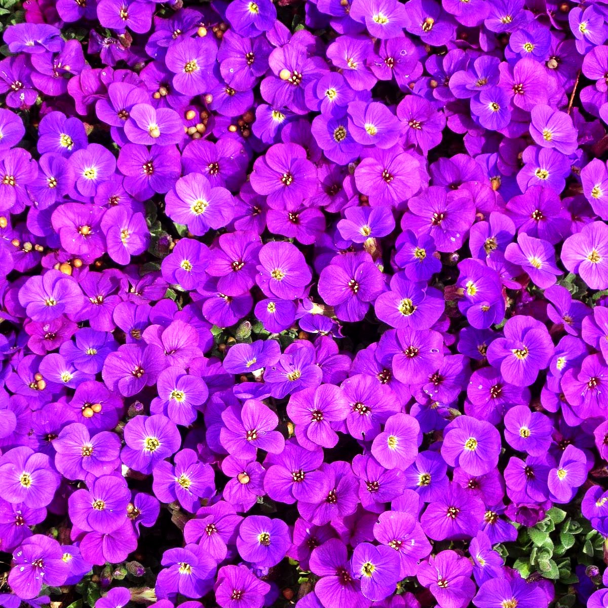 Das Blaukissen (Aubrieta x cult. 'Kitte') verzaubert jeden Garten mit seinen leuchtend violettblauen Blüten, die von April bis Mai in voller Pracht erscheinen. Diese kompakte Staude wird etwa 10 cm hoch und bildet dichte Polster mit attraktiven, wintergrünen graugrünen Blättern, die auch in der kalten Jahreszeit für Struktur sorgen.