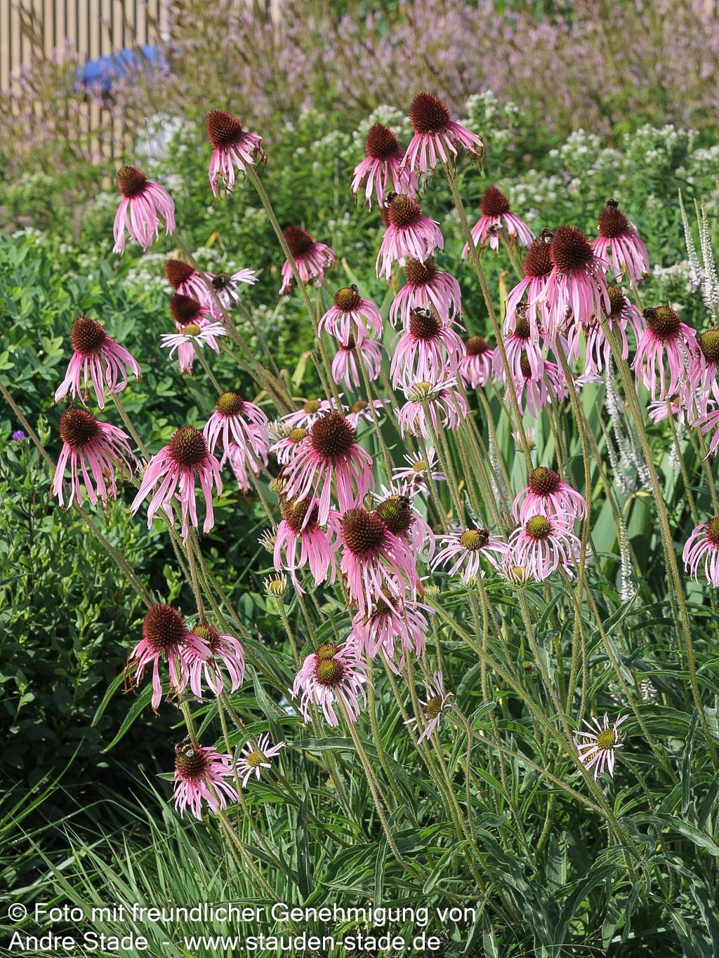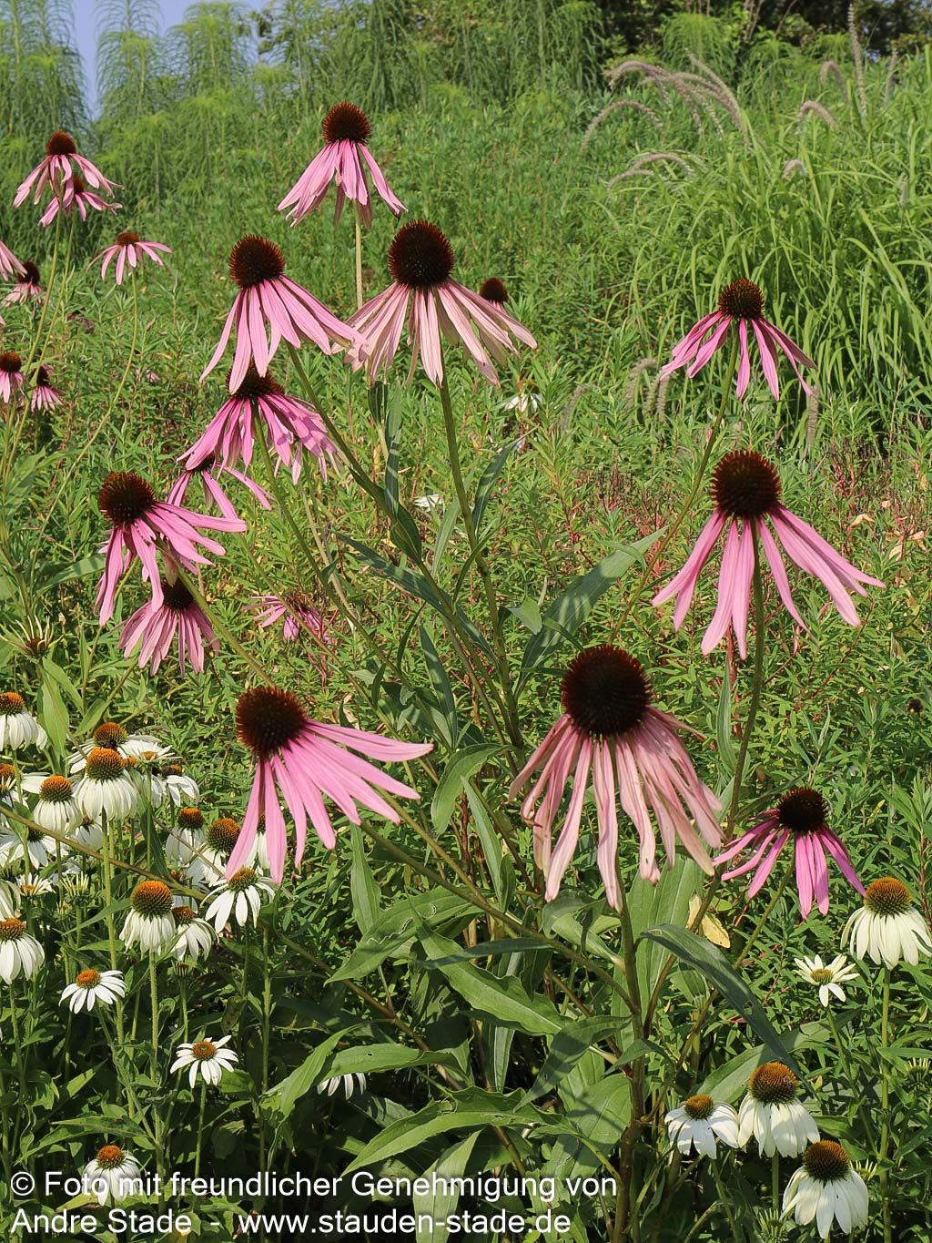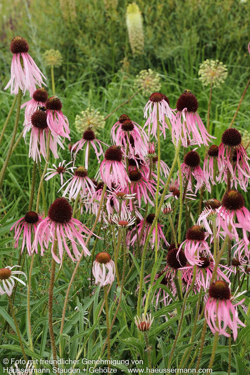 Der Bleiche Sonnenhut (Echinacea pallida) ist eine beeindruckende Heilpflanze und ein wahres Juwel für jeden naturnahen Garten. Diese robuste Staude begeistert von Juli bis September mit ihren eleganten, rosa einfachen Blüten, die auf imposanten 80 cm hohen Stielen thronen. Die dunkel-grünen, sommergrünen Blätter bilden einen perfekten Kontrast zur zarten Blütenpracht. Diese winterharte Staude mit Winterhärtezone Z3 gedeiht optimal an sonnigen Standorten auf frischen bis trockenen Böden. Als vielseitige Heilpflanze und Fit-Kraut ist sie nicht nur eine Bereicherung für den Bauerngarten, sondern auch ein wertvoller Rosenbegleiter und eine wichtige Insektennährpflanze. Perfekt geeignet für Schnittzwecke, macht sie auch in der Vase eine hervorragende Figur.
