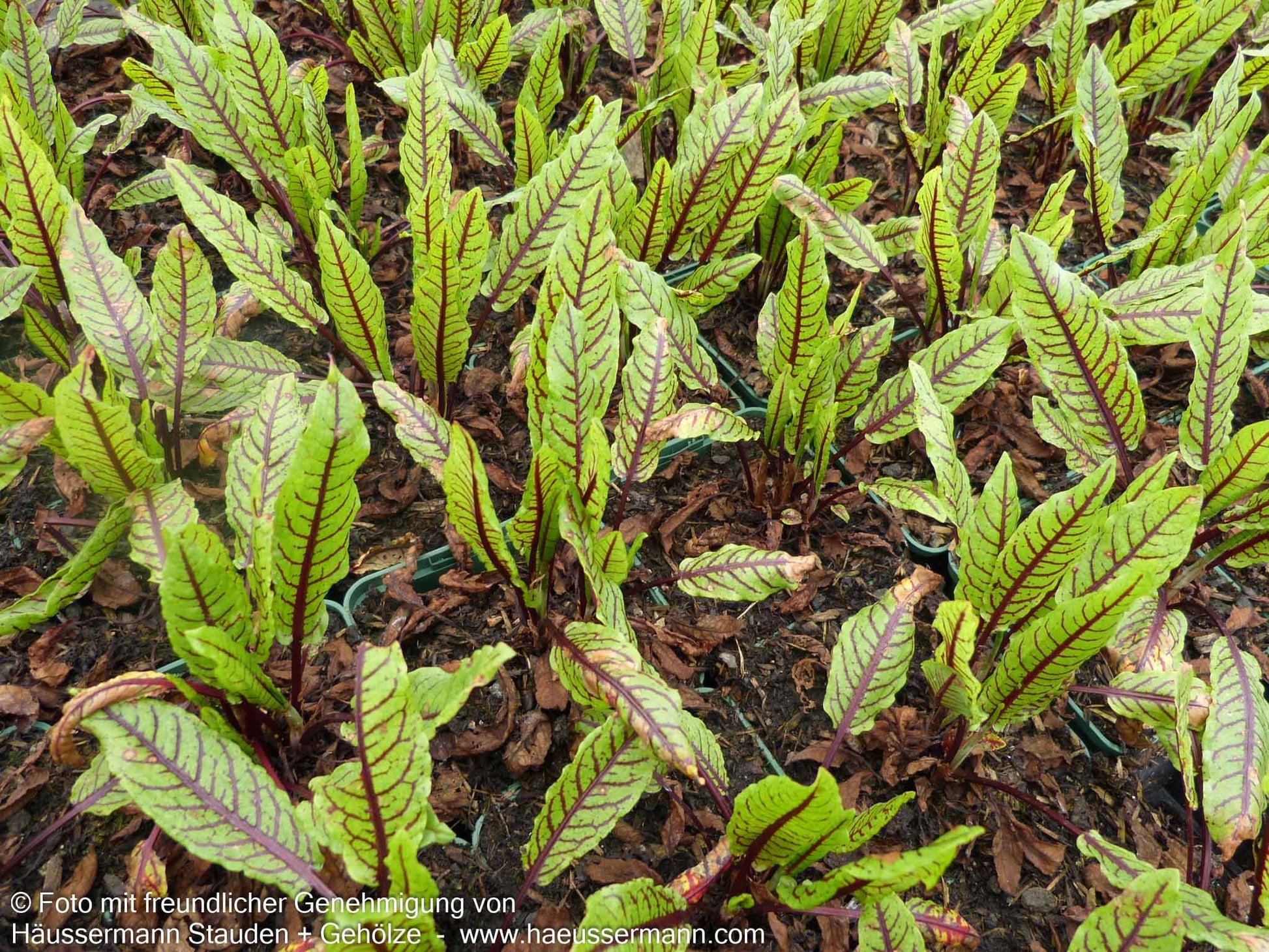 Der Blut-Ampfer (Rumex sanguineus) ist eine außergewöhnliche Staude mit spektakulär blutroten Blattadern, die jeden Garten und Salat optisch bereichert. Diese heimische Pflanze erreicht eine Blattwerkhöhe von 20 cm und bildet von Juni bis August matt-rote, unscheinbare Blüten in 30-80 cm Höhe. Die jungen, Vitamin-C-reichen Blätter sind nicht nur ein echter Hingucker im Salat, sondern auch als Fit-Kraut und Salat-Kraut geschätzt. An einem sonnigen Standort mit frischem bis feuchtem Boden gedeiht diese winterharte Staude (bis -22°C) optimal und eignet sich sowohl als Gehölzrandstaude als auch als Freiflächenstaude.