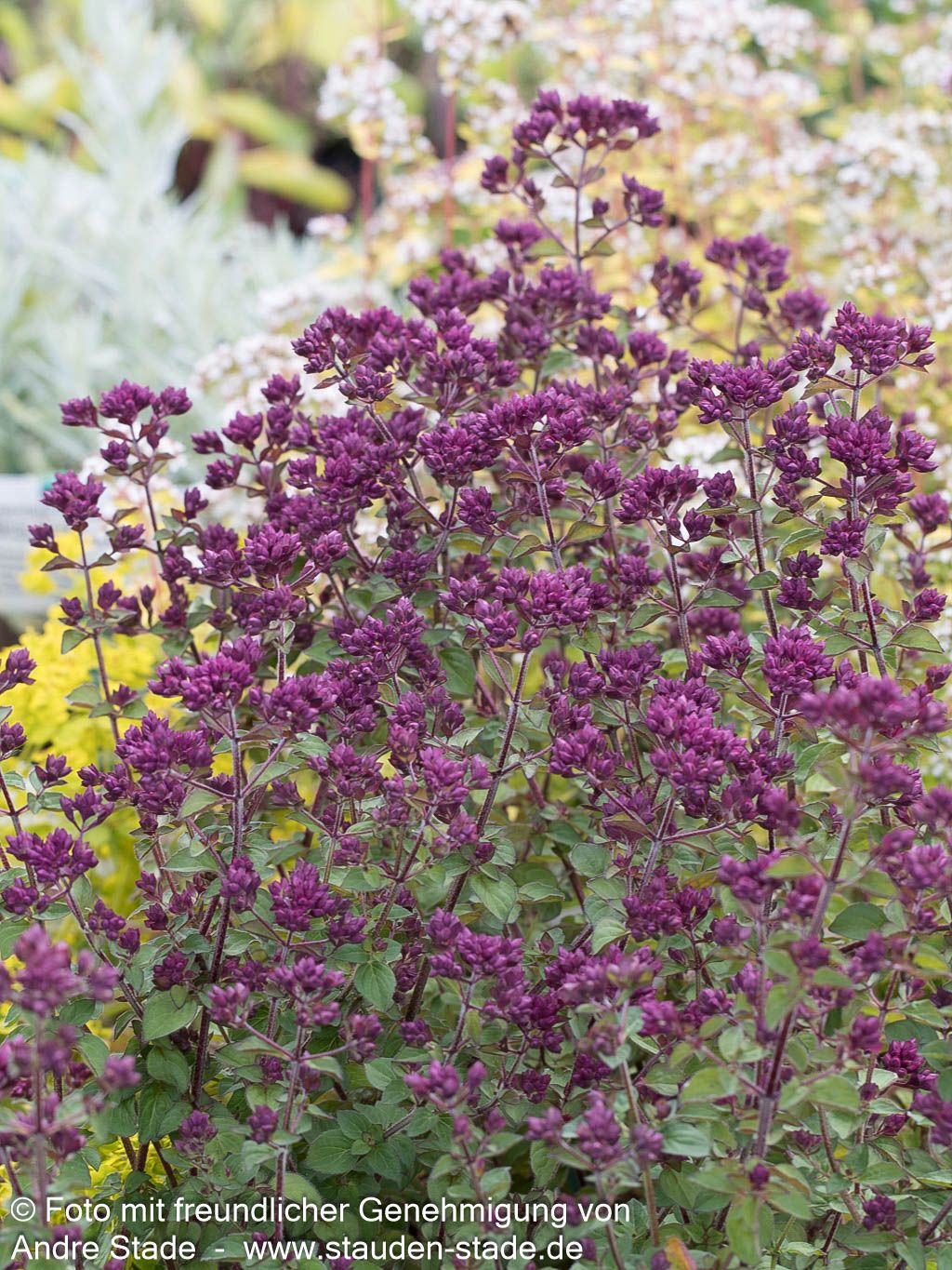 Der Blüten-Dost (Origanum laevigatum 'Rosenkuppel') ist eine bezaubernde Staude, die mit ihren rosaroten Blüten von Juli bis September jeden Garten in ein Blütenmeer verwandelt. Diese buschige, dichtbuschig bis lockerbuschig wachsende Pflanze erreicht eine Blütenhöhe von 40 bis 60 cm und besticht durch ihre graugrünen, sommergrünen Blätter mit herrlichem Blüten- und Blattduft. Als perfekte Insektennährpflanze lockt sie Bienen und Schmetterlinge magisch an. Der Blüten-Dost gedeiht optimal an sonnigen Standorten auf trockenen bis frischen Böden und ist mit einer Winterhärte bis -22 °C (Zone 6) bestens für unser Klima geeignet. Diese vielseitige Staude eignet sich hervorragend für den Bauerngarten, als Beetstaude oder sogar für die extensive Dachbegrünung. Mit einem empfohlenen Pflanzabstand von 30 cm entwickelt sich der Blüten-Dost als charakterstarke Gerüststaude zu einem unverzichtbaren Highlight in Ihrem Garten.