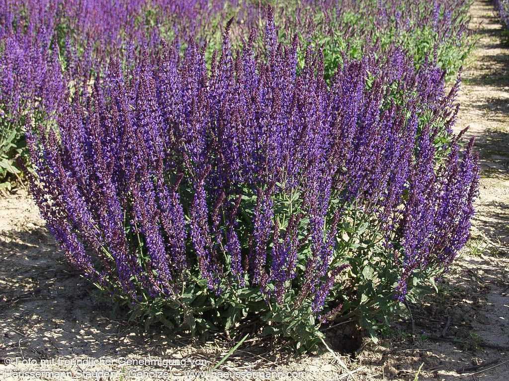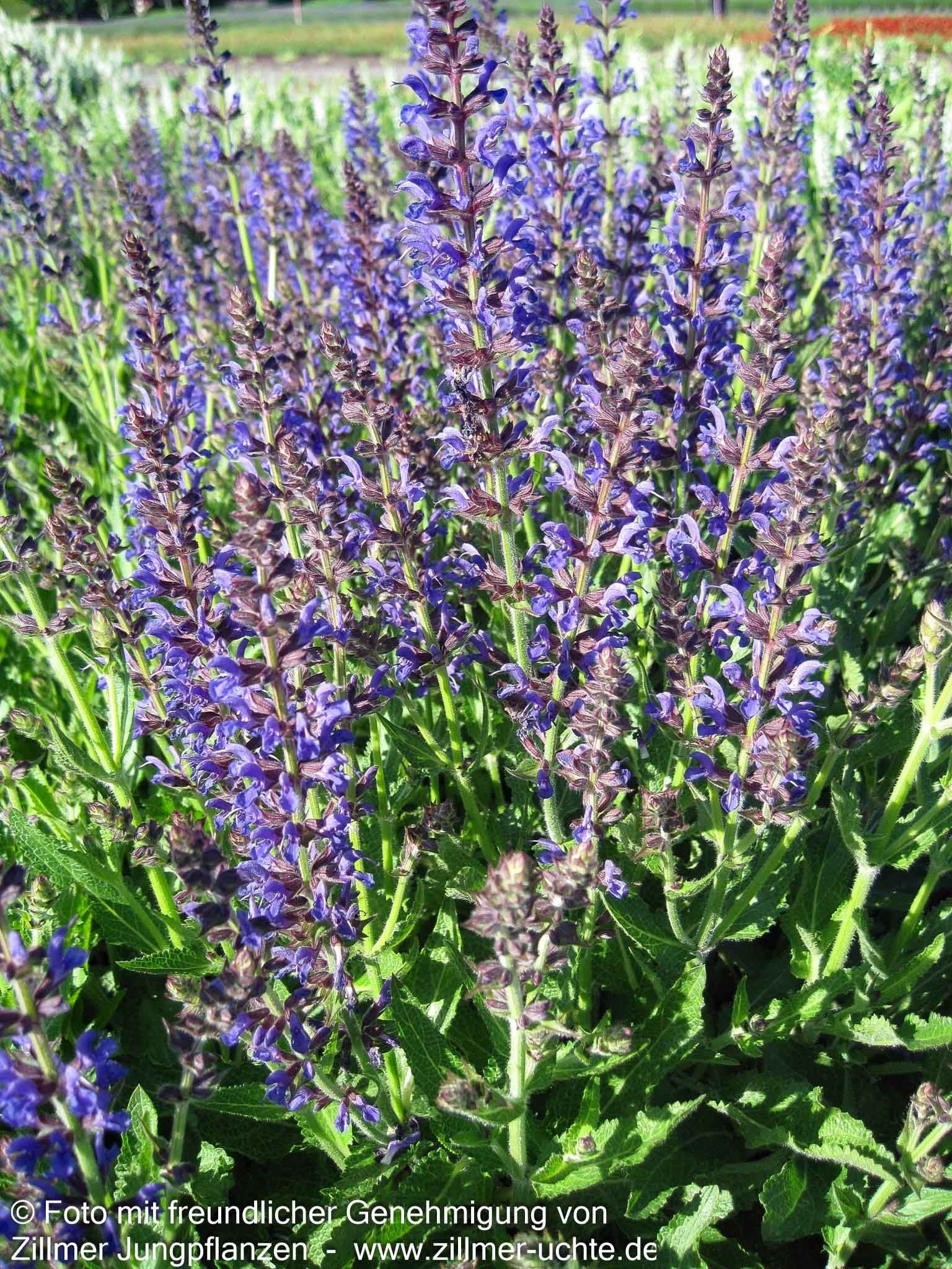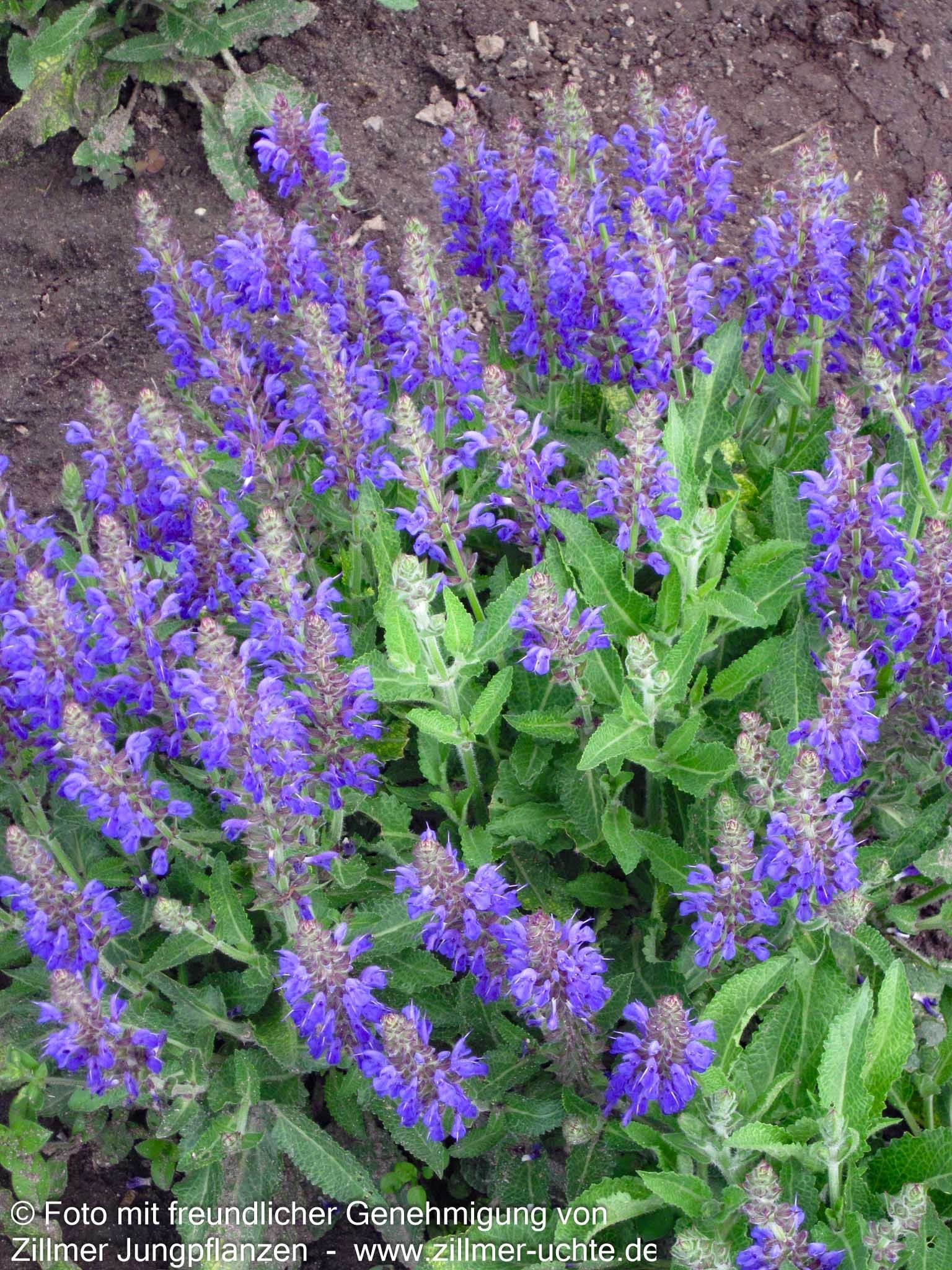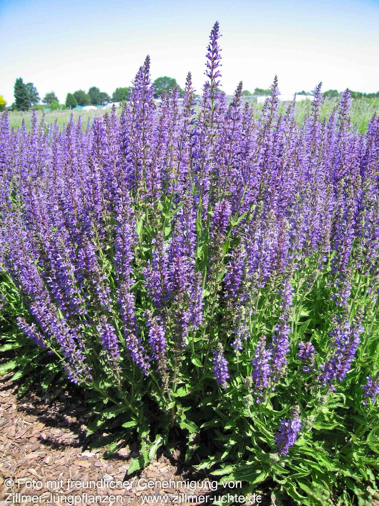 Der Blüten-Salbei (Salvia nemorosa 'Rügen') begeistert als außergewöhnliche Sternensorte mit seinen tief-blauen Blüten von Juni bis Oktober und wurde nicht ohne Grund zur Staude des Jahres 2003 gekürt. Diese robuste, 40 cm hohe Staude mit ihrem charakteristischen Blatt- und Blütenduft gedeiht optimal an sonnigen Standorten auf frischen bis trockenen Böden. Als wertvolle Insektennährpflanze eignet sich dieser kleinflächige Bodendecker hervorragend für Beetstauden-Arrangements und Freiflächenstauden-Pflanzungen, wobei ein Pflanzabstand von 30-40 cm optimal ist.