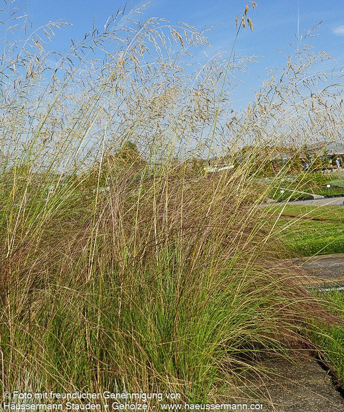 Das Bogen-Liebesgras (Eragrostis curvula 'Totnes Burgundy') ist ein faszinierendes Ziergras, das mit seiner spektakulären burgundroten Herbstfärbung jeden Garten bereichert. Dieses elegante Gras erreicht eine Höhe von 100-120 cm und zeigt von Juni bis September seine charakteristischen bräunlichen Blüten in warmen braunroten Tönen. Die graugrünen Blätter bleiben als wintergrünes Laub das ganze Jahr über attraktiv und sorgen für dauerhafte Struktur im Beet. Als robuste Freiflächenstaude gedeiht es optimal an sonnigen Standorten auf durchlässigen Böden von trocken bis frisch. Als Leitstaude setzt es markante Akzente und ist perfekt für moderne, pflegeleichte Gärten geeignet.