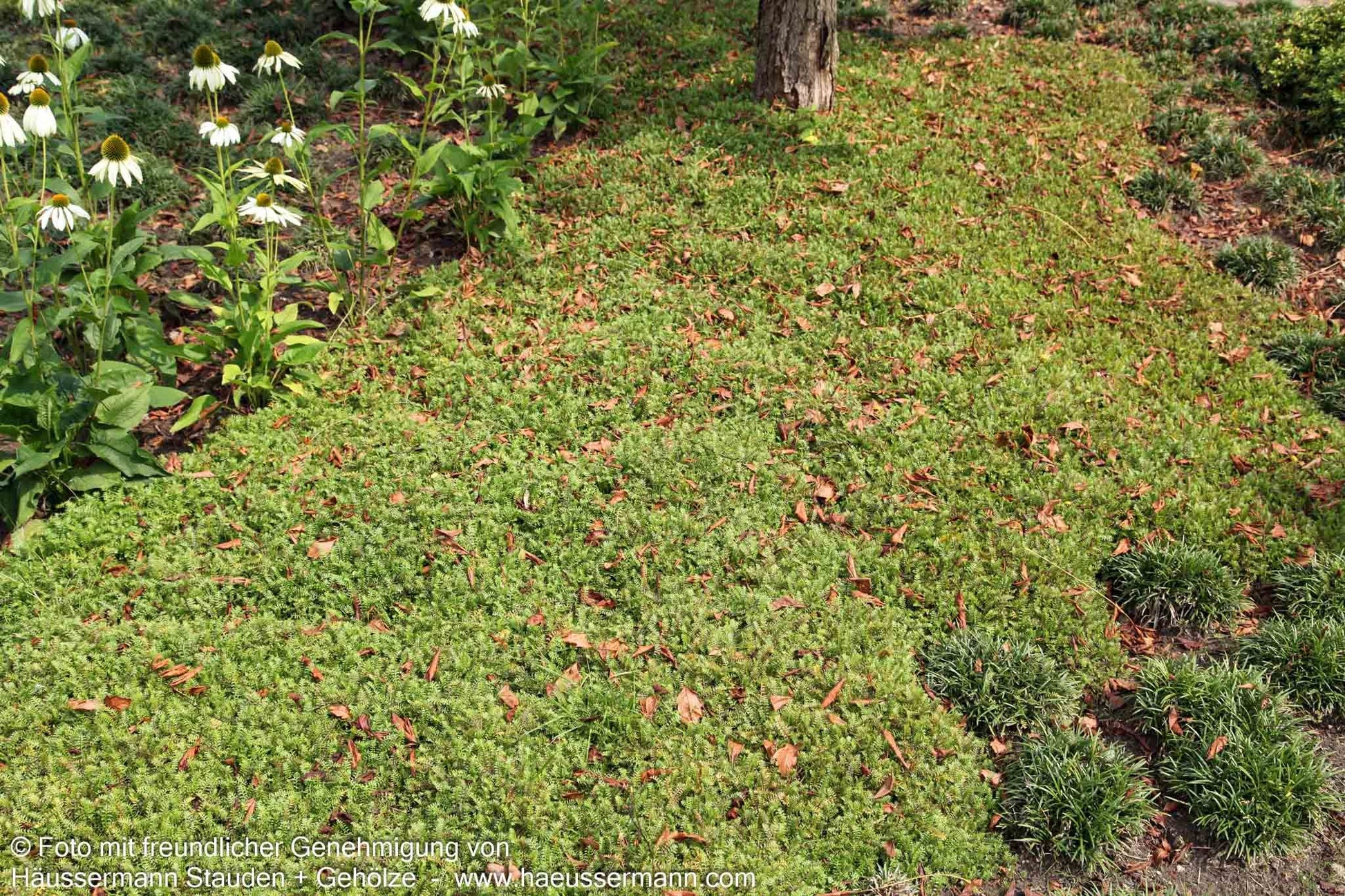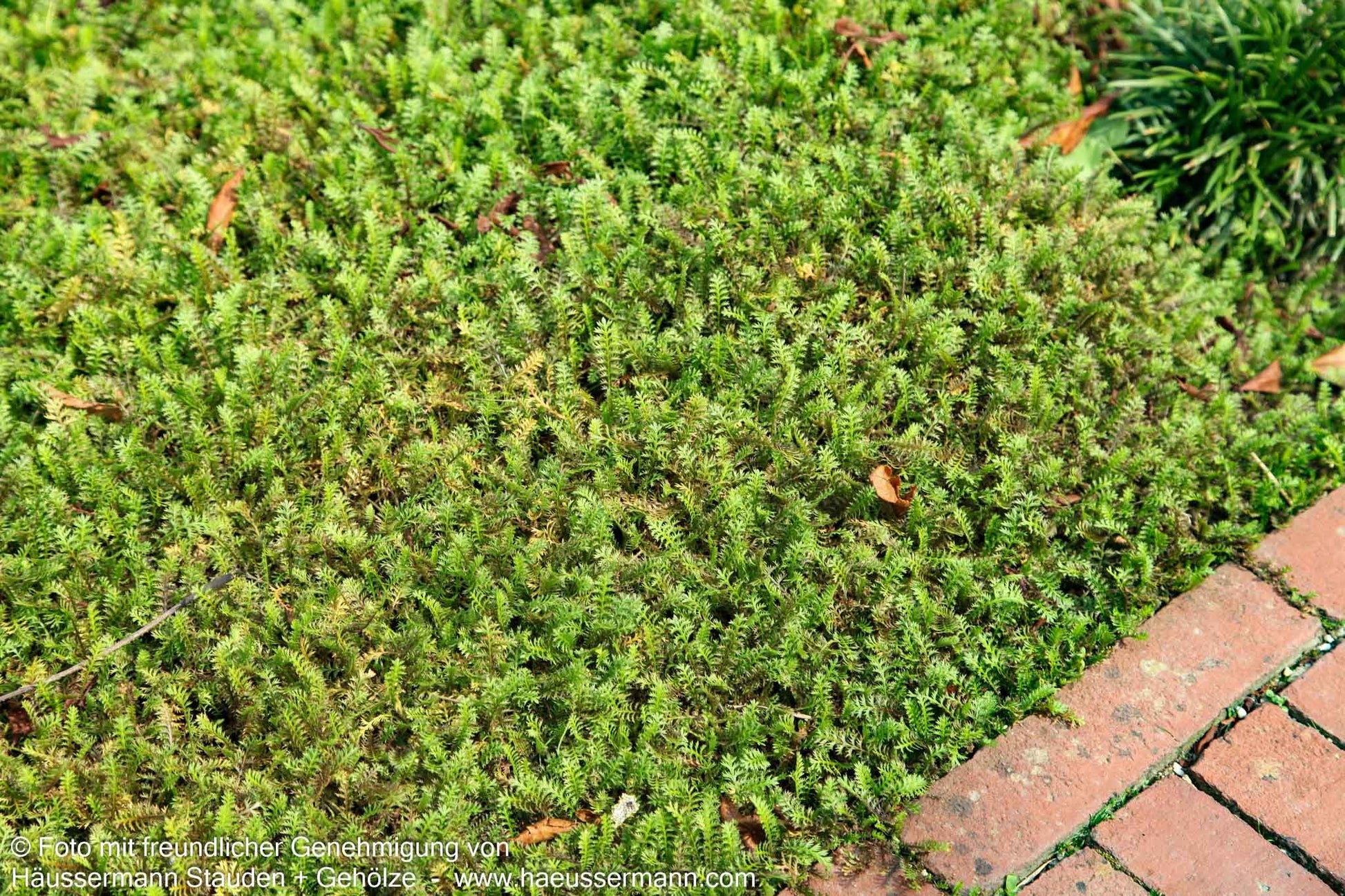 Der Braune Fiederteppich (Cotula squalida) ist eine außergewöhnliche Staude, die mit ihrem teppichartigen Wuchs und den charakteristischen bräunlichgrünen Blättern jeden Steingarten bereichert. Diese robuste Sternensorte zeigt von Mai bis August unscheinbare gelbliche Blüten und erreicht eine kompakte Höhe von nur 5 cm. Als wintergrüne Pflanze bietet sie das ganze Jahr über attraktive Struktur und gedeiht optimal an sonnigen bis halbschattigen Standorten mit frischen bis feuchten Böden. Besonders wertvoll ist dieser kleinflächige Bodendecker für Steinfugen und eignet sich hervorragend für Grabstätten, wo er mit seinem kriechenden Wuchsverhalten schnell dichte Matten bildet.