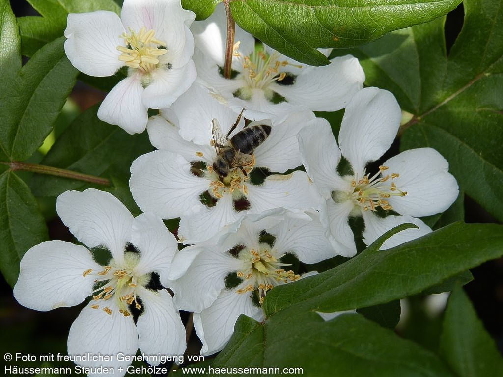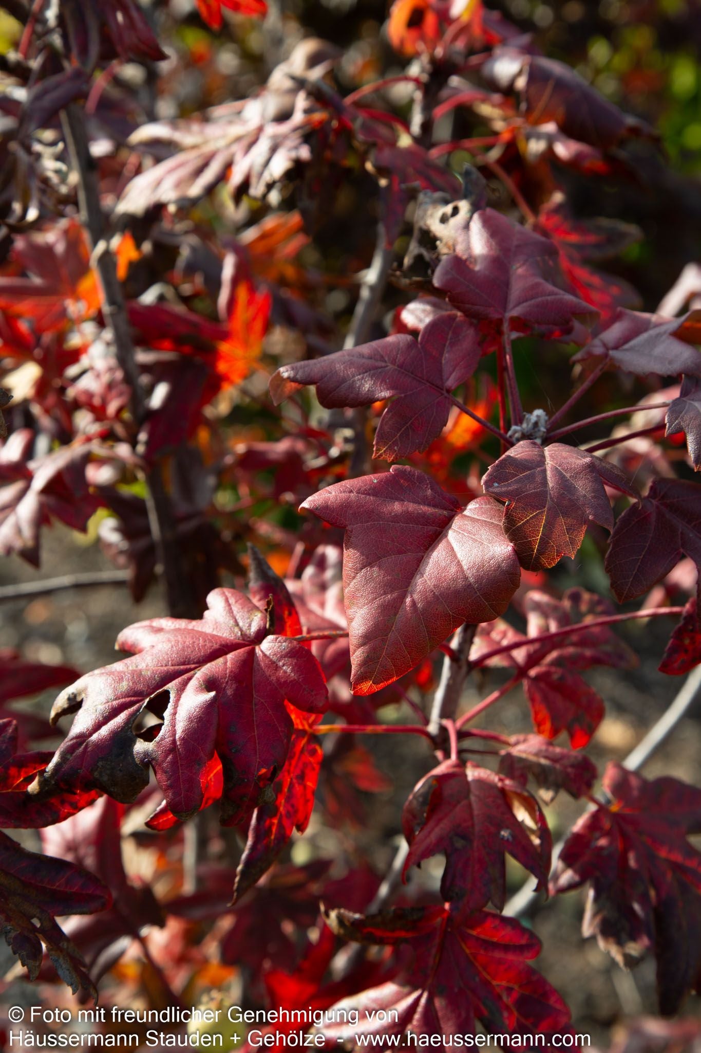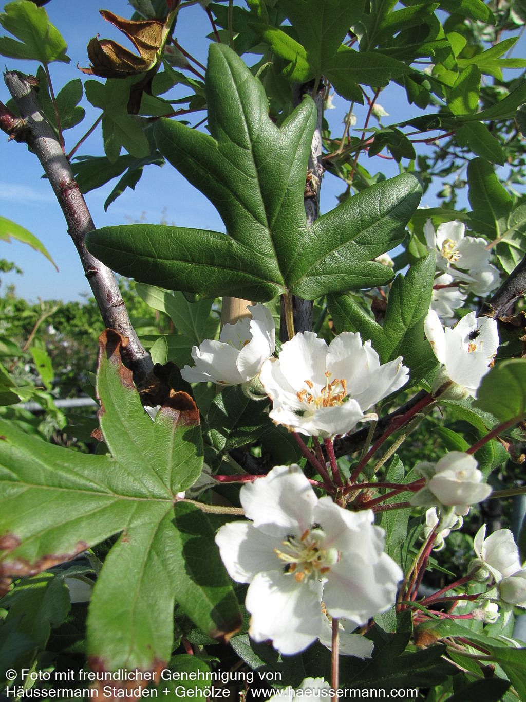 Der Dreilappige Apfel (Malus trilobata) ist ein außergewöhnlicher Laubbaum mit charakteristischen, glänzend dunkel-grünen Blättern, die eine markante dreilappige Form aufweisen. Dieser elegante Kleinbaum wächst schmal aufrecht und kegelförmig und erreicht eine imposante Höhe bis 15 Meter. Von April bis Mai verzaubert er mit seinem herrlichen Blütenschmuck aus weißen Blüten, gefolgt von dekorativen grün-roten Früchten als attraktiver Fruchtschmuck. Im Herbst begeistert das sommergrüne Laub mit einer spektakulären Herbstfärbung in leuchtenden Gelb-, Rot- und Purpurtönen. Dieser vielseitige Baum gedeiht an sonnigen bis halbschattigen Standorten auf frischen bis feuchten Böden und dient gleichzeitig als wertvolle Insektennährpflanze und Vogelnährpflanze, während seine Früchte auch kulinarisch bedeutsam sind.