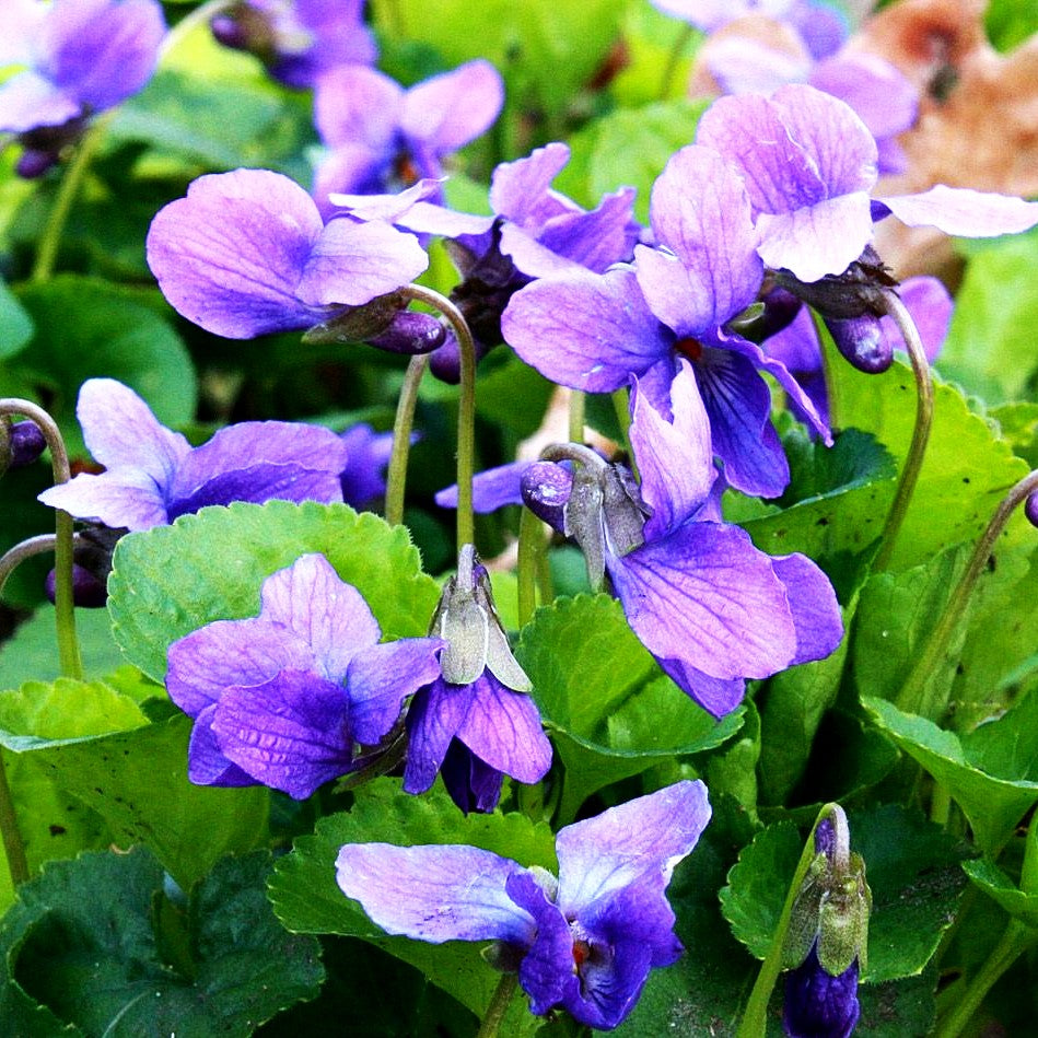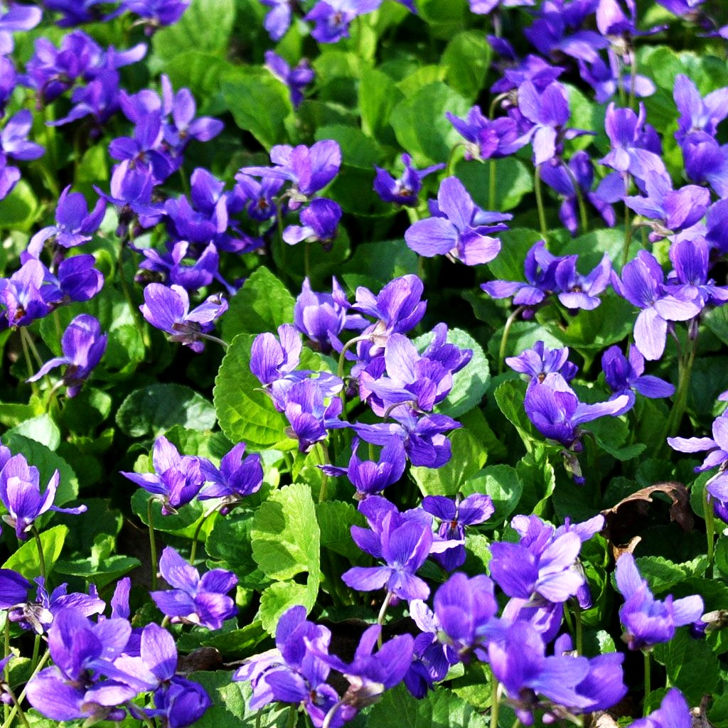 Das Duft-Veilchen 'Königin Charlotte' (Viola odorata 'Königin Charlotte') verzaubert mit seinem kräftigen Veilchenduft und den bezaubernden blauvioletten Blüten, die von März bis April erscheinen und sogar remontierend nachblühen. Diese als Sternesorte ausgezeichnete Staude erreicht eine Blütenhöhe von 10-15 cm, während das grüne, sommergrüne Laub 5-8 cm hoch wird.