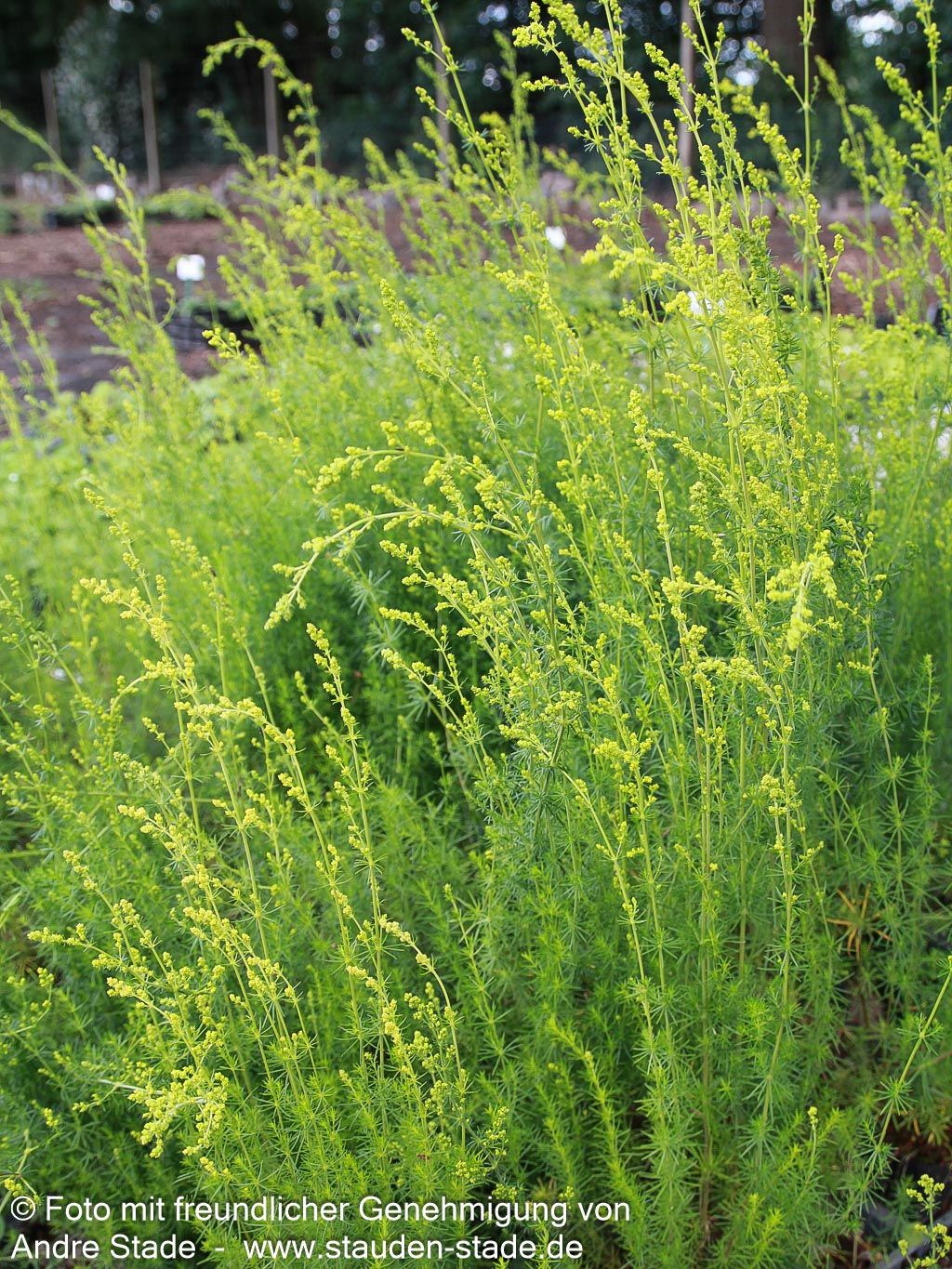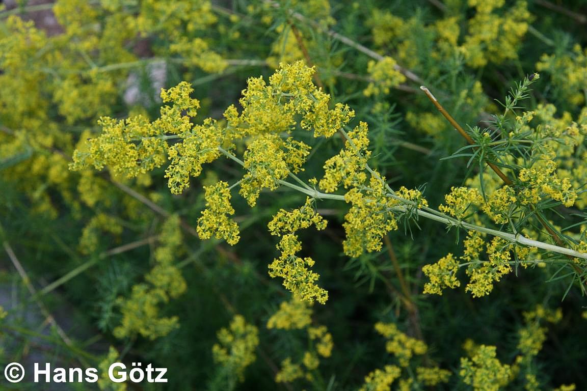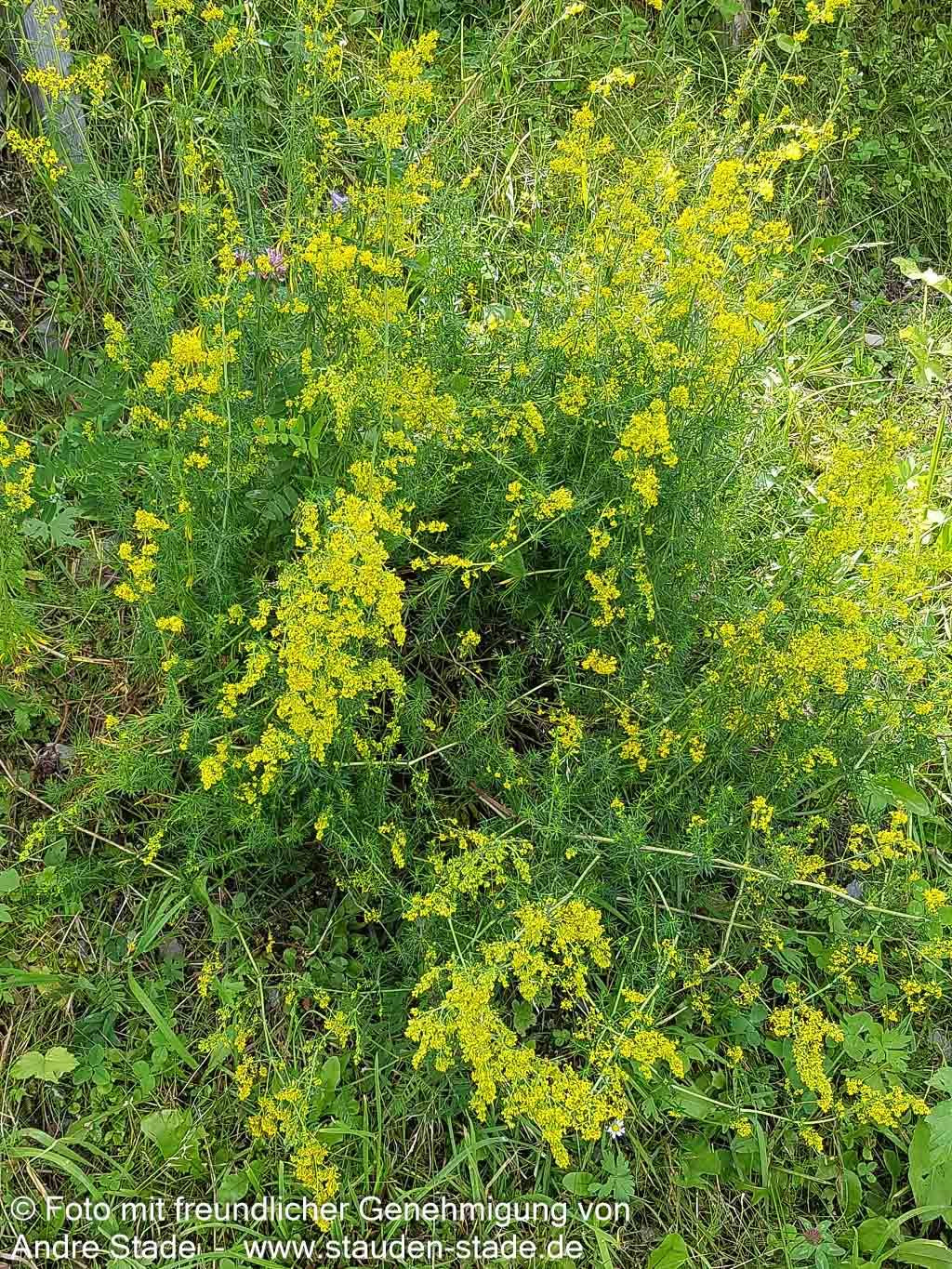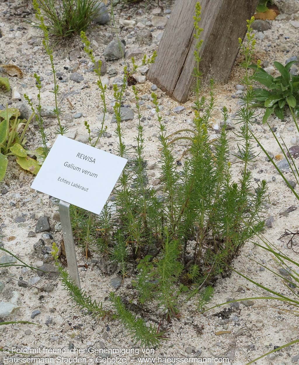 Das Echte Labkraut (Galium verum) ist eine faszinierende heimische Staude, die mit ihren leuchtend gelben Blüten von Mai bis September bezaubert. Diese vielseitige Heil- und Medizinpflanze erreicht eine Blütenhöhe von 15 bis 50 cm und verströmt einen herrlichen honigartigen Duft. Das ausläuferbildende Labkraut gedeiht optimal an sonnigen Standorten mit frischem Boden und eignet sich hervorragend als Gehölzrandstaude oder Freiflächenstaude. Als wertvolle Insektennährpflanze lockt sie besonders Taubenschwänzchen an, deren Raupen ausschließlich an Labkräutern fressen. Die winterharte Staude mit ihren sommergrünen, grünen Blättern ist nicht nur ein Augenschmaus, sondern auch ein Stück Gartengeschichte – traditionell wurde sie zum Färben von Wolle und zur Käseherstellung verwendet.