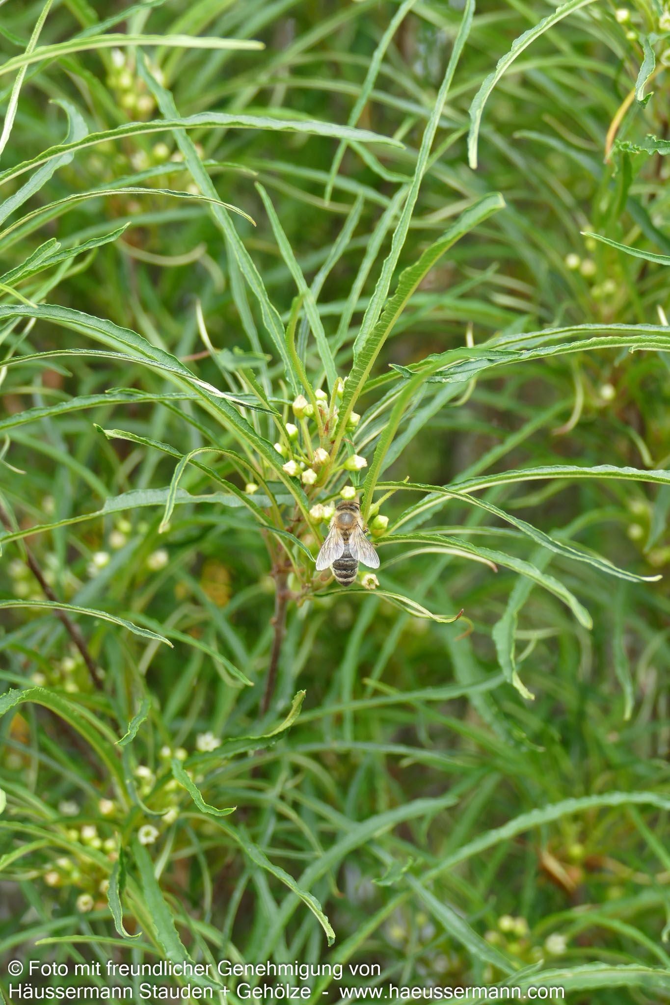 Der Farnblättrige Säulen-Faulbaum (Rhamnus frangula 'Fine Line') ist ein außergewöhnlicher Zierstrauch, der mit seinem eleganten säulenförmigen Wuchs und den schmalen, lineallanzettlichen Blättern jeden Garten bereichert. Diese kompakte Laubgehölz-Rarität erreicht eine Höhe von 1,5-2,5 Metern und überzeugt durch ihre besondere Blattform, die an Farnwedel erinnert. Das dunkelgrüne, filigrane Laub verwandelt sich im Herbst in ein leuchtendes Gelb und macht diese herbstfärbende Pflanze zu einem wahren Blickfang. Im Mai und Juni locken die unscheinbaren Blüten zahlreiche Insekten an. Dank ihres breit aufrechten Wuchses ist dieser sommergrüne Strauch ideal für kleine Gärten geeignet und gedeiht sowohl in sonnigen als auch in halbschattigen Lagen auf frischen bis feuchten Böden. Bitte beachten Sie, dass diese Pflanze giftig ist.