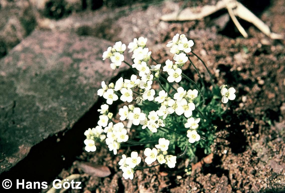 Das Felsenblümchen (Draba x suendermannii) ist eine bezaubernde Staude, die mit ihren gelblichweißen Blüten von März bis Juni jeden Steingarten bereichert. Diese robuste Staude entwickelt einen polsterartigen Wuchs mit einer Blütenhöhe von 5 bis 8 cm und grünem, wintergrünem Laub. Das Felsenblümchen gedeiht optimal an sonnigen Plätzen mit trockenem bis frischem Boden und eignet sich hervorragend für Steinanlagen, Steinfugen und das Alpinum. Als wertvolle Insektennährpflanze unterstützt sie die heimische Fauna und ist mit einer Winterhärtezone Z7 bis -17°C bestens für unser Klima geeignet.