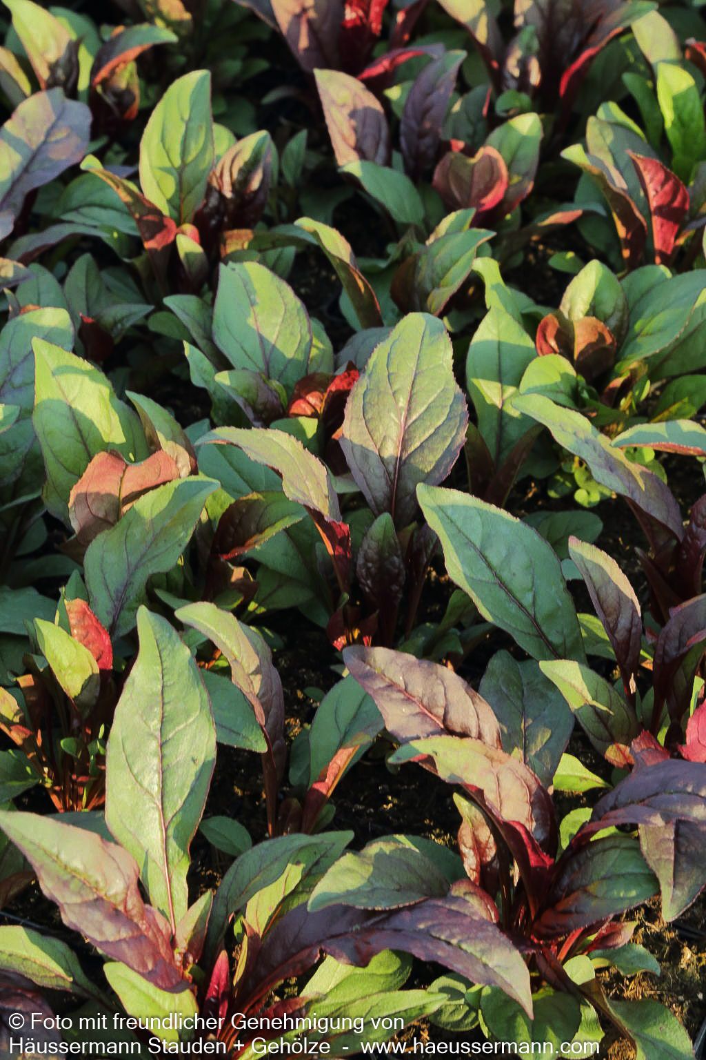 Der Fingerhutförmige Bartfaden (Penstemon digitalis 'Husker's Red') ist eine außergewöhnliche Staude, die mit ihrer spektakulären Farbkombination jeden Garten bereichert. Diese beeindruckende Staude besticht durch ihre markanten roten bis rotbraunen wintergrünen Blätter und bildet einen wunderschönen Kontrast zu den zarten weißen einfachen Blüten, die von Juni bis August in imposanter Höhe von bis zu 100 cm erstrahlen. Diese pflegeleichte Pflanze gedeiht hervorragend an sonnigen Standorten auf trockenen bis frischen Böden und ist als Insektennährpflanze ein wertvoller Beitrag zur Biodiversität. Perfekt geeignet für den Bauerngarten oder als Leitstaude, eignet sie sich auch hervorragend für Schnittzwecke und übersteht dank ihrer Winterhärte bis -28°C selbst strenge Winter problemlos.