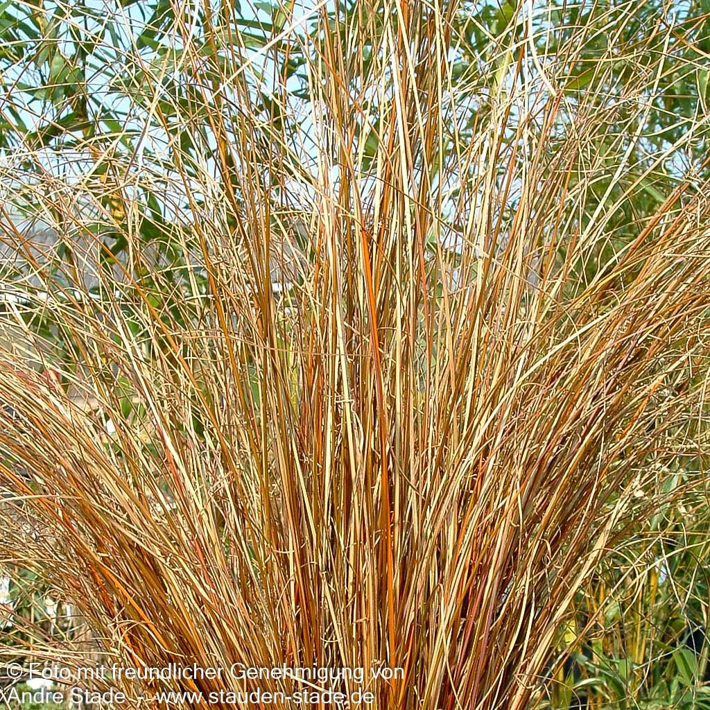 Die Fuchsrote Segge (Carex buchananii) ist ein außergewöhnliches Ziergras, das mit seinem rotbraunen, wintergrünen Blattwerk einen faszinierenden Akzent in jeden Garten bringt. Diese Staude des Jahres 2015 entwickelt 25-40 cm hohe, bogig geneigte Blattschöpfe mit einer besonderen Blattform und Textur. Von Juni bis August zeigt sie ihre unscheinbaren rotbraunen Blüten, die perfekt zum warmen Farbton der Blätter harmonieren. Als vielseitige Grasstaude gedeiht sie optimal an sonnigen Standorten auf frischen bis feuchten Böden. Die winterharte Segge eignet sich hervorragend für Freiflächen, Steinanlagen und sogar für die extensive Dachbegrünung.