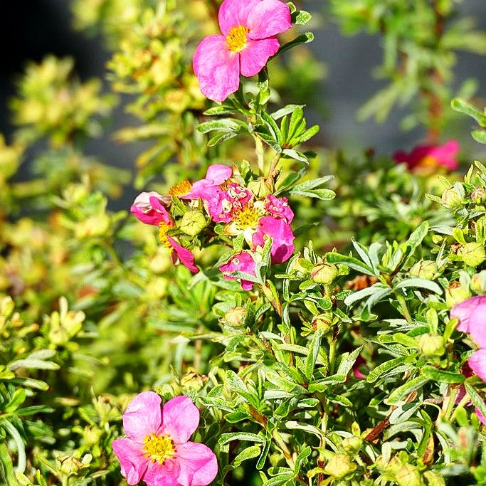 Der Fünffingerstrauch (Potentilla fruticosa 'Bellissima') gilt als die beste rosa Sorte unter den Fingersträuchern und begeistert von Juli bis September mit zahlreichen, intensiv dunkelrosa Blüten. Dieser kompakte Zwergstrauch wächst flach und dichtbuschig mit feintriebigem Wuchs, erreicht eine Höhe von bis zu 0,8 m und eine Breite von 1,2 m – ideal für den kleinen Garten. Die breit ausladende Wuchsform macht ihn perfekt als kleinflächigen Bodendecker oder zur großflächigen Bepflanzung. Dieses sommergrüne Laubgehölz aus der Gruppe der Laubgehölze bevorzugt einen sonnigen Standort mit frischen bis feuchten Böden. Ob im Steingarten, als Einzelstellung oder als niedere Hecke – dieser blütenreiche Schmuckstrauch setzt leuchtende Akzente in Ihrem Garten.