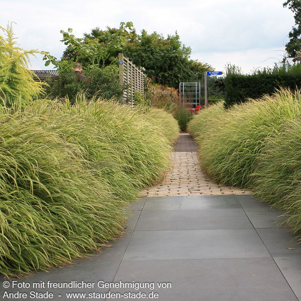 Das Gelbgestreifte Japangras (Hakonechloa macra 'Aureola') ist eine ausgezeichnete Ziergras-Sorte, die mit ihrer spektakulären gelb-grünen Blattfärbung jeden Garten bereichert. Als Staude des Jahres 2022 überzeugt dieses elegante Gras durch seine bogige, ausladende Wuchsform und erreicht eine Blütenhöhe von 25 bis 40 cm. Die besonderen Blätter zeigen sich im Sommer gelb gestreift und verwandeln sich im Herbst in purpurviolette bis gelbbraune Töne. Perfekt gedeiht es an halbschattigen Standorten mit frischem bis feuchtem Boden. Die grünlichbraunen Blüten erscheinen von August bis Oktober und machen es zur idealen Leitstaude für Gehölzränder und als kleinflächiger Bodendecker.