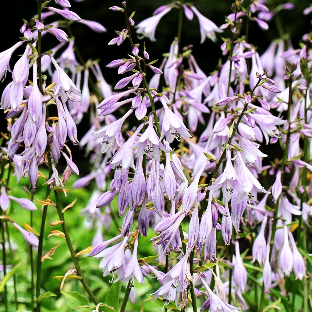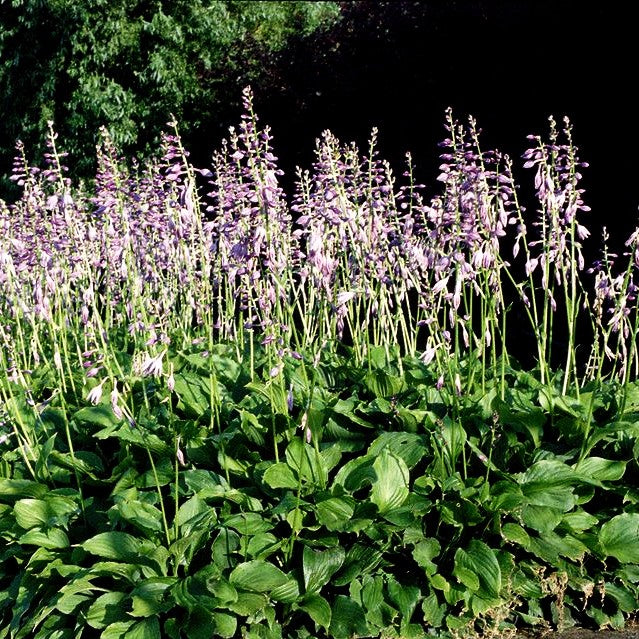 Die Glocken-Funkie (Hosta ventricosa) verzaubert von Juli bis August mit eleganten, tief-violetten einfachen Blüten, die auf 80 bis 90 cm hohen Stielen thronen. Das prächtige, dunkel-grüne sommergrüne Blattwerk erreicht eine Höhe von 40 bis 60 cm und bildet mit seiner ausladenden, bogigen Wuchsform dichte Horste.