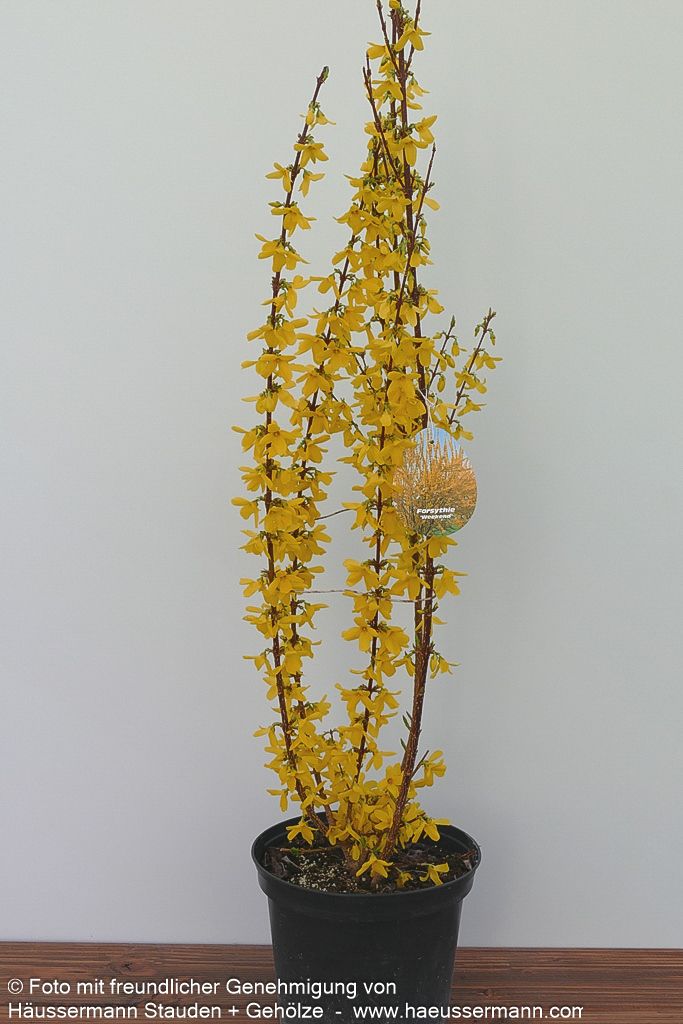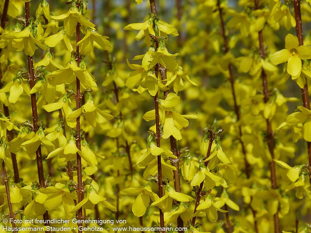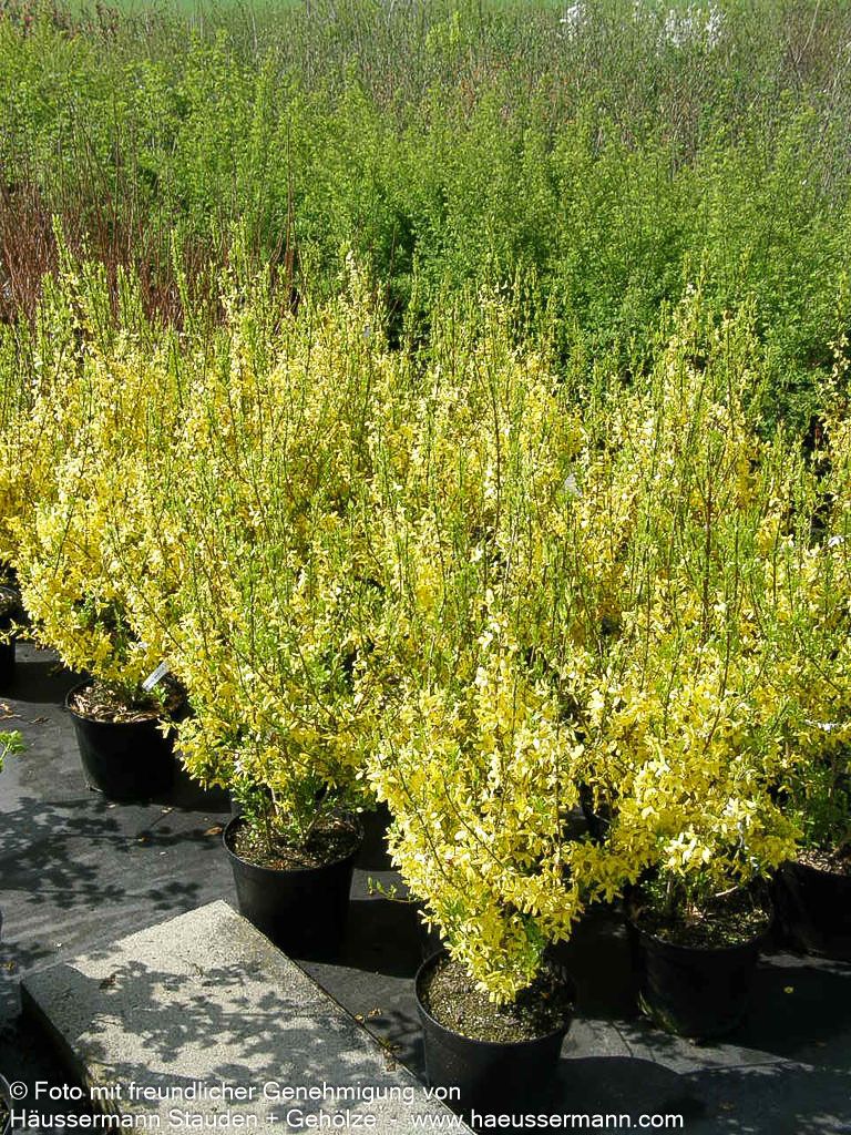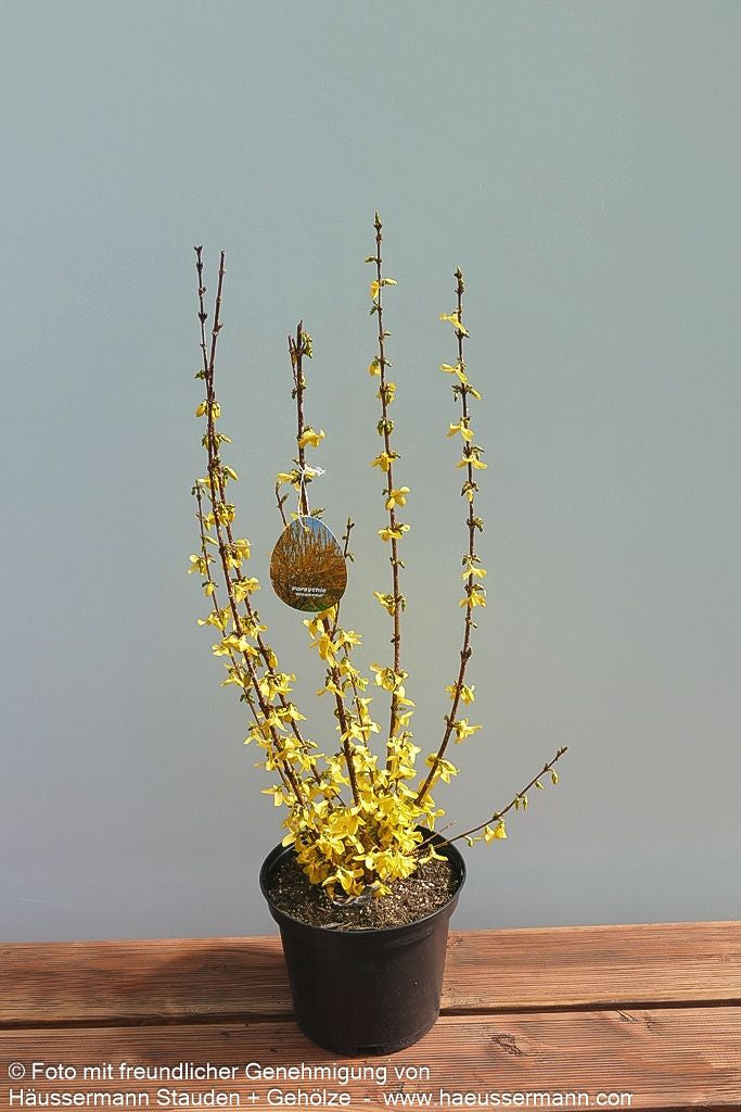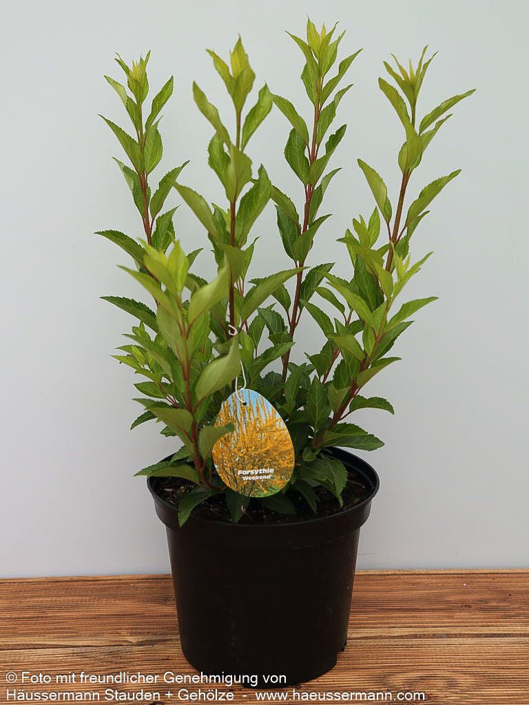 Das Goldglöckchen 'Week-End' (Forsythia x intermedia 'Week-End') verzaubert jeden Garten mit seiner spektakulären Frühlingsblüte und ist ein echter Hingucker für sonnige Standorte. Dieser dichtbuschige, sommergrüne Strauch erreicht eine Höhe von 1,5-2 Metern und entwickelt im Alter eine malerische, bogig überhängende Wuchsform. Von März bis April explodiert die Forsythie förmlich in einem Meer aus leuchtend-gelben Blüten, die noch vor dem Laubaustrieb erscheinen und ein unvergessliches Frühlingserlebnis schaffen. Das dunkelgrüne Sommerlaub verwandelt sich im Herbst in prächtige Purpurtöne und sorgt für zusätzlichen Zierwert. Dank ihrer Anspruchslosigkeit und ihres außergewöhnlichen Blütenschmucks eignet sich diese pflegeleichte Forsythie perfekt für Blütenhecken, Einzelstellungen oder Gruppenpflanzungen und gedeiht optimal auf frischen Böden in kleinen Gärten.