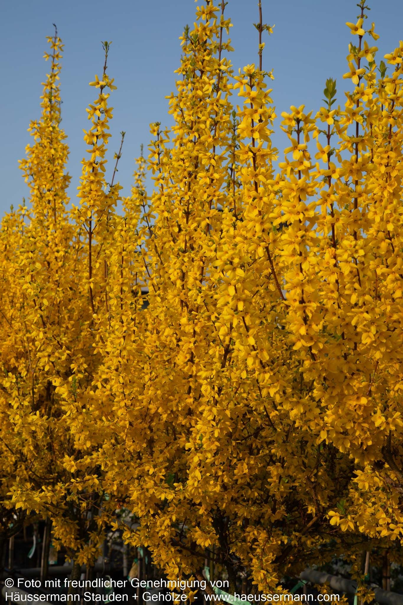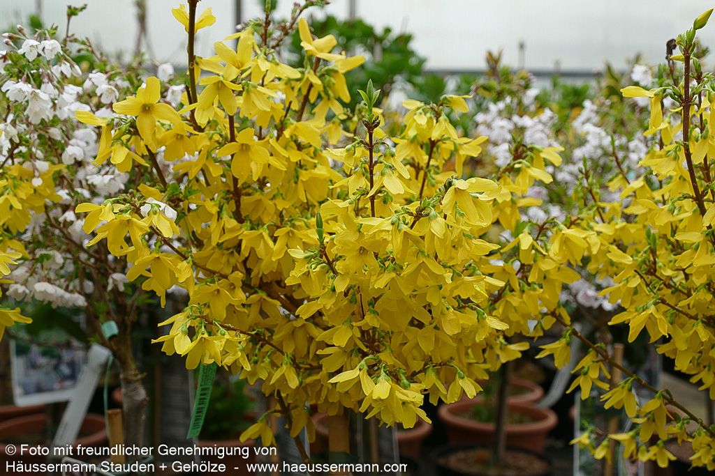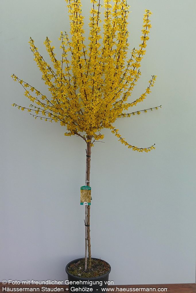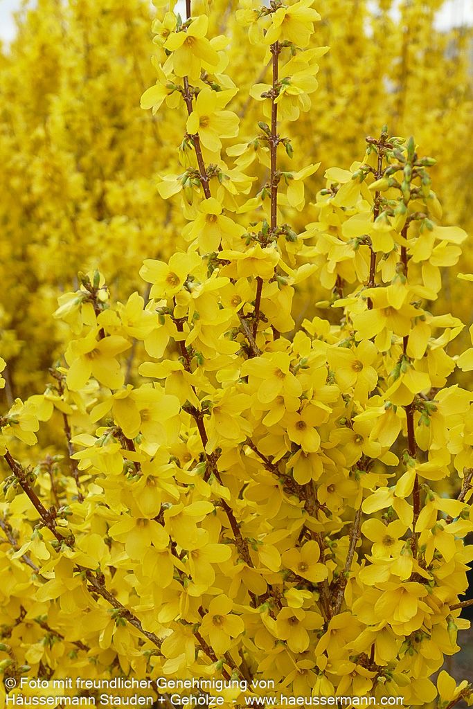 Das Goldglöckchen 'Week-End' (Forsythia x intermedia 'Week-End') verzaubert jeden Garten mit seiner spektakulären Frühlingsblüte und ist ein echter Hingucker für sonnige Standorte. Dieser dichtbuschige, sommergrüne Strauch erreicht eine Höhe von 1,5-2 Metern und entwickelt im Alter eine malerische, bogig überhängende Wuchsform. Von März bis April explodiert die Forsythie förmlich in einem Meer aus leuchtend-gelben Blüten, die noch vor dem Laubaustrieb erscheinen und ein unvergessliches Frühlingserlebnis schaffen. Das dunkelgrüne Sommerlaub verwandelt sich im Herbst in prächtige Purpurtöne und sorgt für zusätzlichen Zierwert. Dank ihrer Anspruchslosigkeit und ihres außergewöhnlichen Blütenschmucks eignet sich diese pflegeleichte Forsythie perfekt für Blütenhecken, Einzelstellungen oder Gruppenpflanzungen und gedeiht optimal auf frischen Böden in kleinen Gärten.