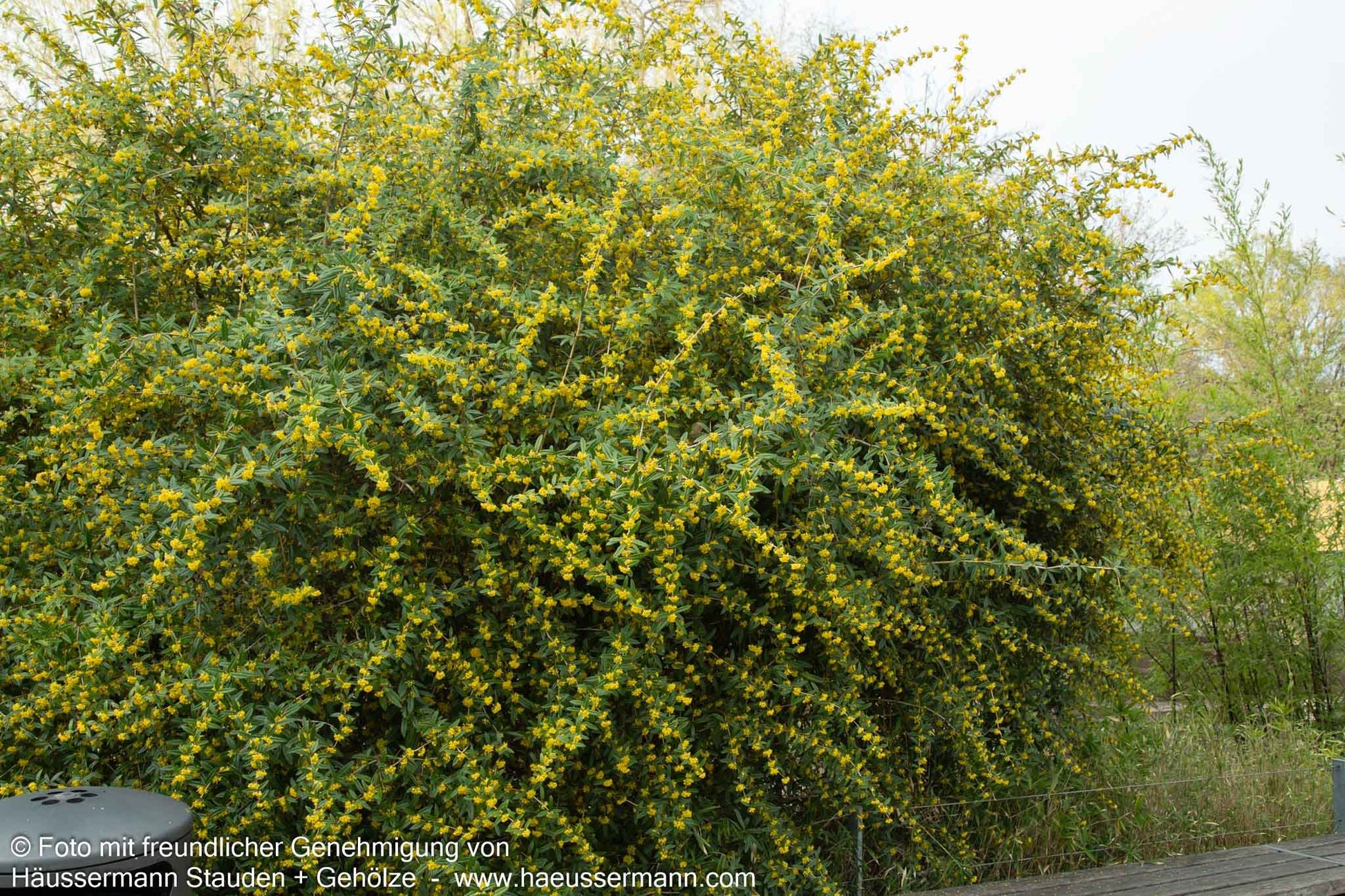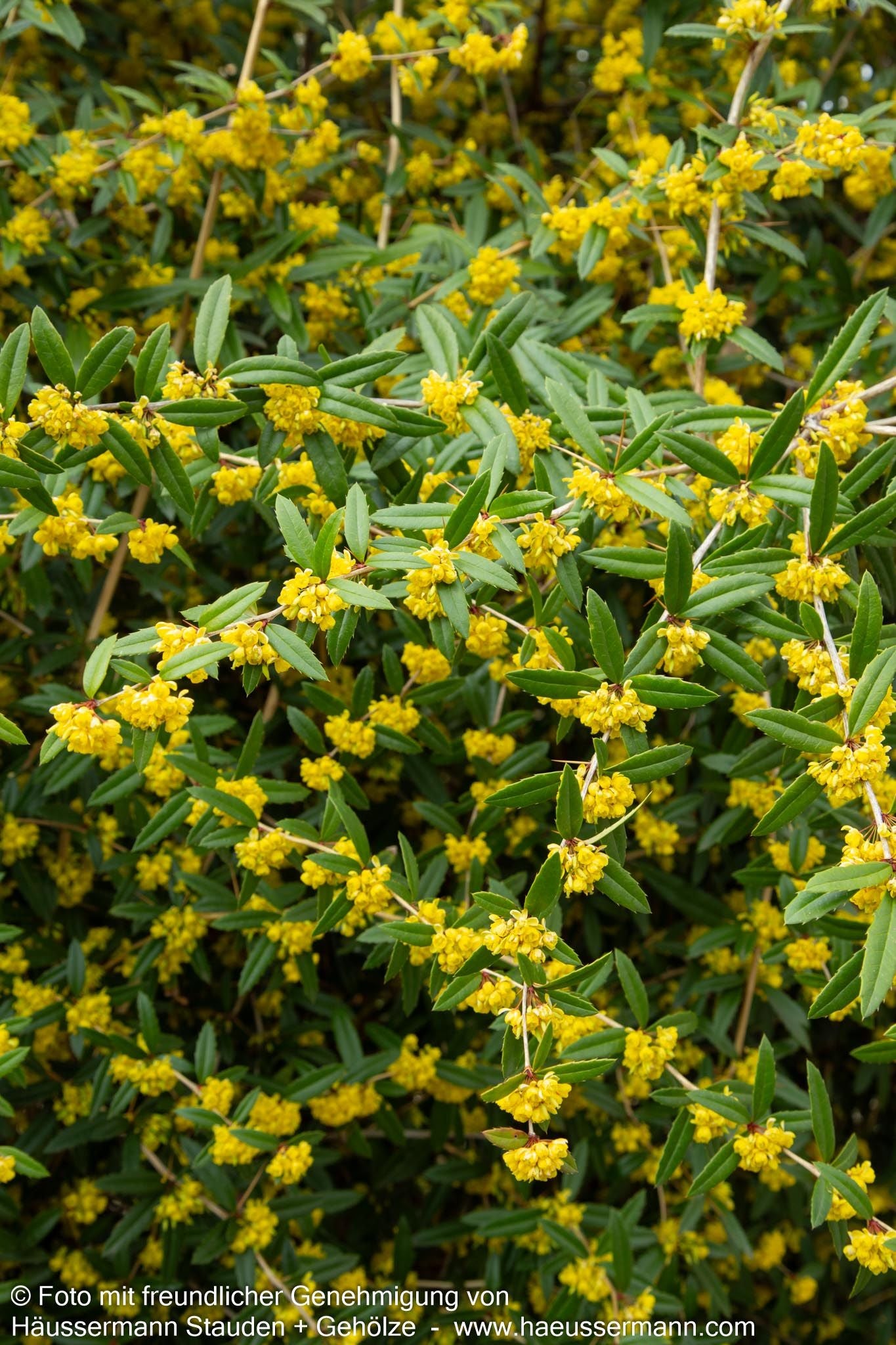 Die Großblättrige Berberitze (Berberis julianae) ist ein robuster, immergrüner Strauch, der mit seiner beeindruckenden Widerstandsfähigkeit und Vielseitigkeit überzeugt. Dieser mittelhohe Strauch erreicht eine Höhe von 2-3 Metern und wächst breit ausladend, wodurch er breiter als hoch wird. Das wintergrüne Laub sorgt auch in der kalten Jahreszeit für Struktur im Garten. Von Mai bis Juni schmückt sich dieses Laubgehölz mit leuchtend gelben, auffallenden Blüten, die nicht nur optisch begeistern, sondern auch Bienen mit Nektar versorgen. Die Großblättrige Berberitze gedeiht sowohl an sonnigen als auch absonnigen Standorten und zeigt sich bei den Bodenverhältnissen äußerst anpassungsfähig – von trocken über frisch bis feucht. Dank ihrer dichten, dornigen Struktur eignet sie sich hervorragend für undurchdringliche Blütenhecken und bietet zuverlässigen Sichtschutz sowie natürlichen Einbruchsschutz.