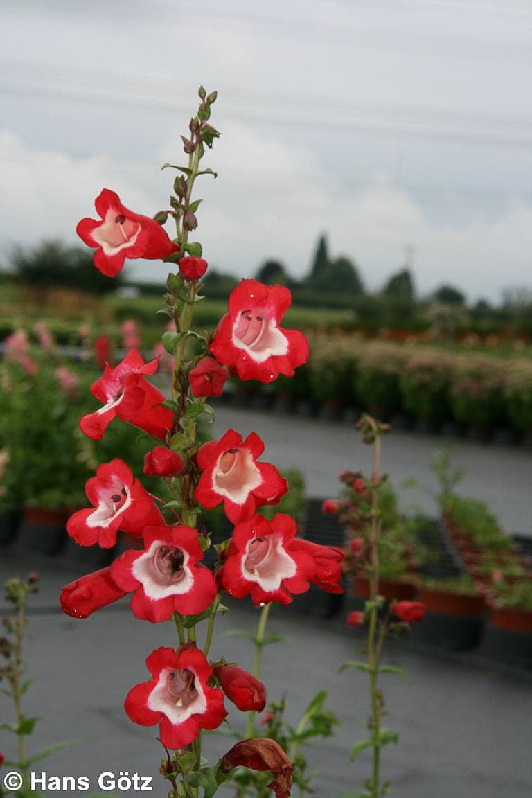 Der Hartwegs Bartfaden (Penstemon hartwegii 'Picotee') verzaubert mit seiner spektakulären Blütenpracht von Juni bis September und ist ein wahres Juwel für jeden Garten. Die kräftig roten Blüten mit weißer Innenzeichnung bilden einen faszinierenden Kontrast zu den dunkelgrünen, lanzettlichen Blättern und machen diese Staude zu einem echten Blickfang. Mit einer Blütenhöhe von 40-50 cm eignet sich diese Beetstaude perfekt als Gerüstpflanze und sollte in Gruppen von 3-5 Exemplaren mit einem Pflanzabstand von 30-40 cm gesetzt werden. An einem sonnigen Standort mit trockenen bis frischen Böden entwickelt sich diese zweijährige Pflanze optimal und bringt mit ihren roten Blüten Farbe in jeden Bauerngarten. Die wintergrünen Eigenschaften und die Winterhärte bis -5°C machen diese Züchtung zu einer robusten Gartenpflanze für die Übergangszeit.