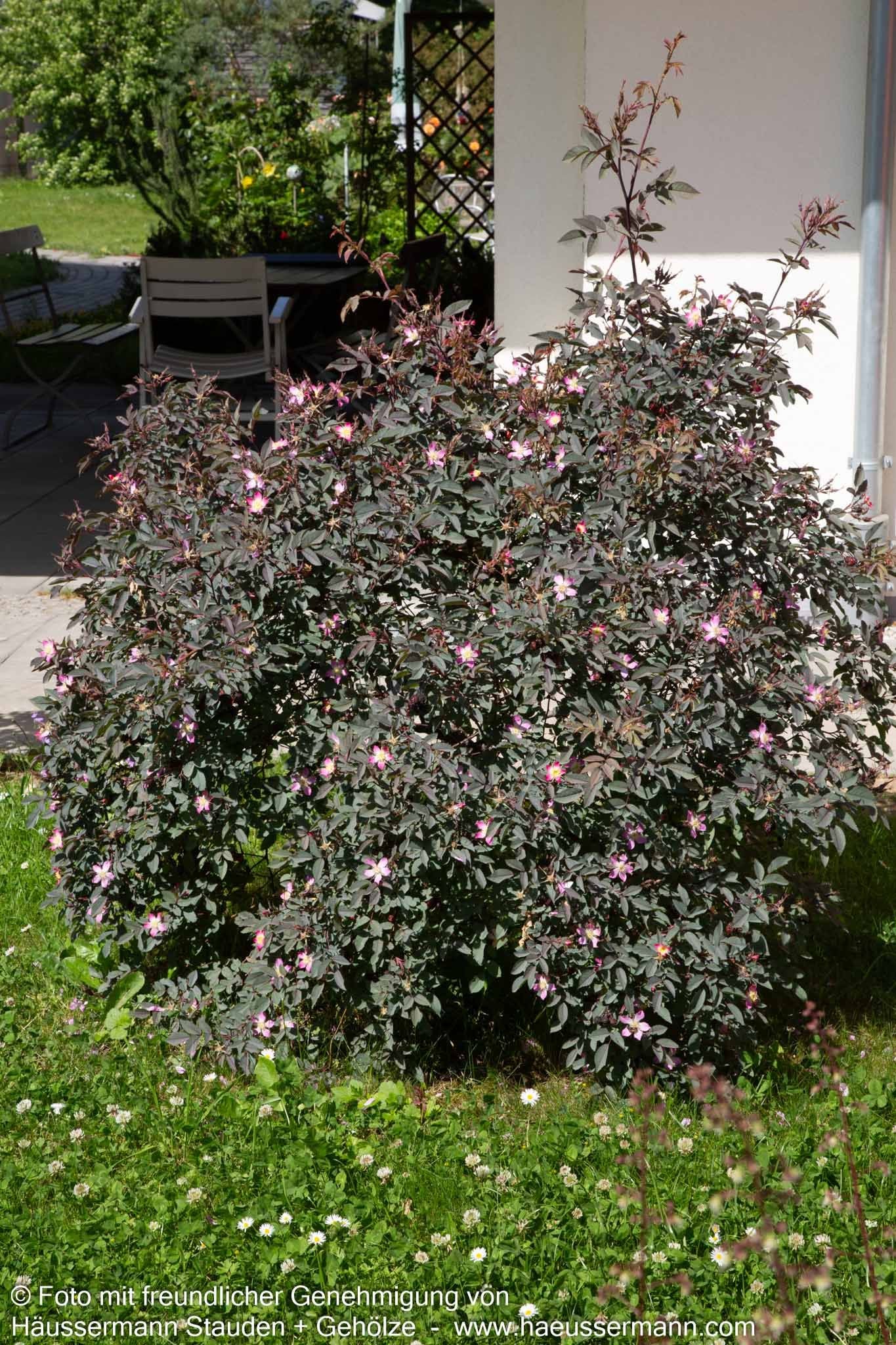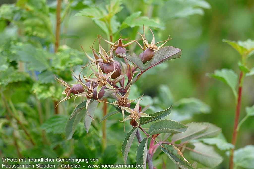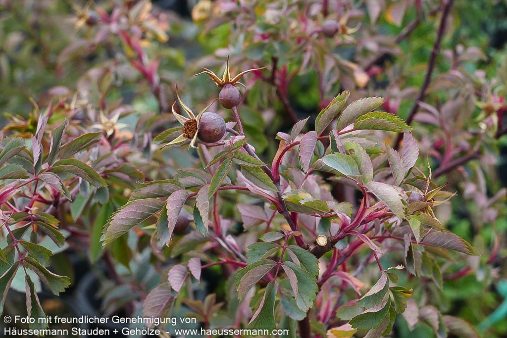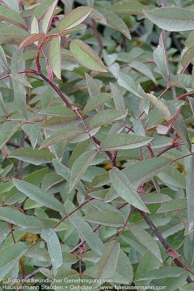 Die Hechtrose (Rosa glauca) ist eine bezaubernde heimische Wildrose, die mit ihrem dekorativen rot-grünen Laub und den charmanten hellroten Blüten von Juni bis August jeden Garten bereichert. Dieser robuste Strauch erreicht eine Höhe von 150-250 cm und wächst buschig aufrecht, wobei er bis zu 3 Meter hoch und breit werden kann. Die einfachen, blauroten bis purpurroten Blüten mit weißer Mitte sind wahre Bienenmagneten und liefern wertvollen Pollen für Insekten. Im Herbst entwickeln sich mittelgroße, kugelige leuchtend rote Hagebutten, die als hervorragendes Vogelnährgehölz dienen. Als in den Pyrenäen, dem Schwarzwald, den Alpen und Karpaten beheimatetes Laubgehölz steht diese seltene Wildrose in Baden-Württemberg und Bayern auf der Roten Liste gefährdeter Arten. Mit ihrer hellroten Blütenpracht und dem ökologischen Wert ist die heimische Hechtrose eine wertvolle Bereicherung für jeden naturnahen Garten.