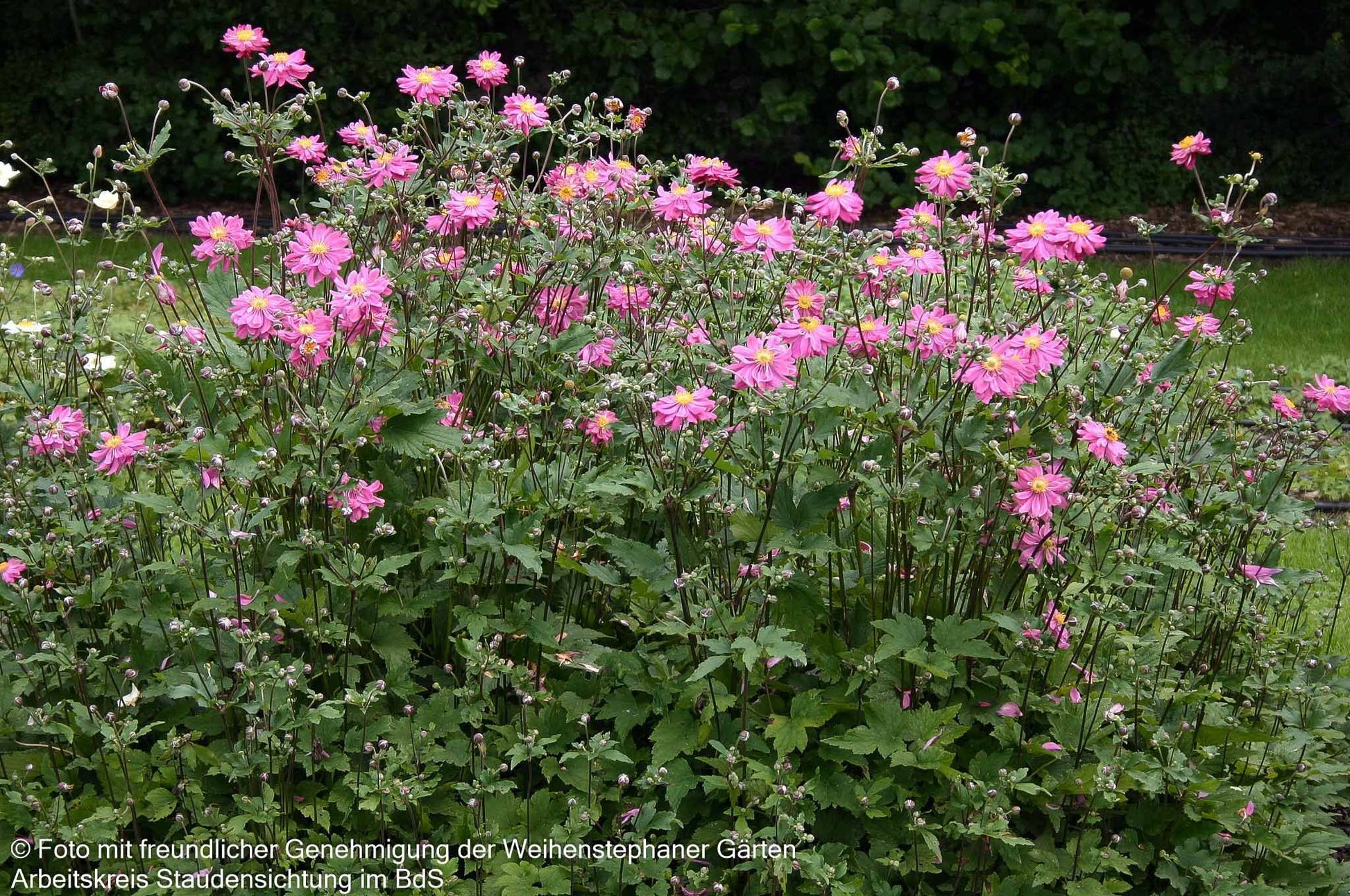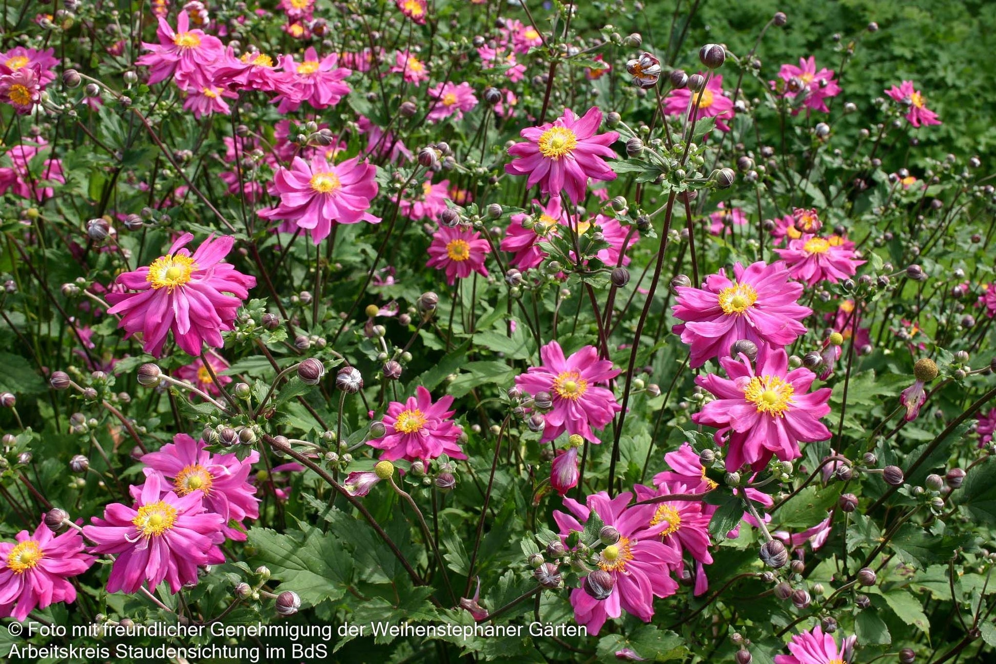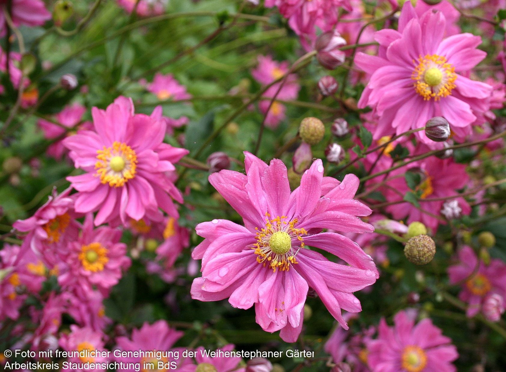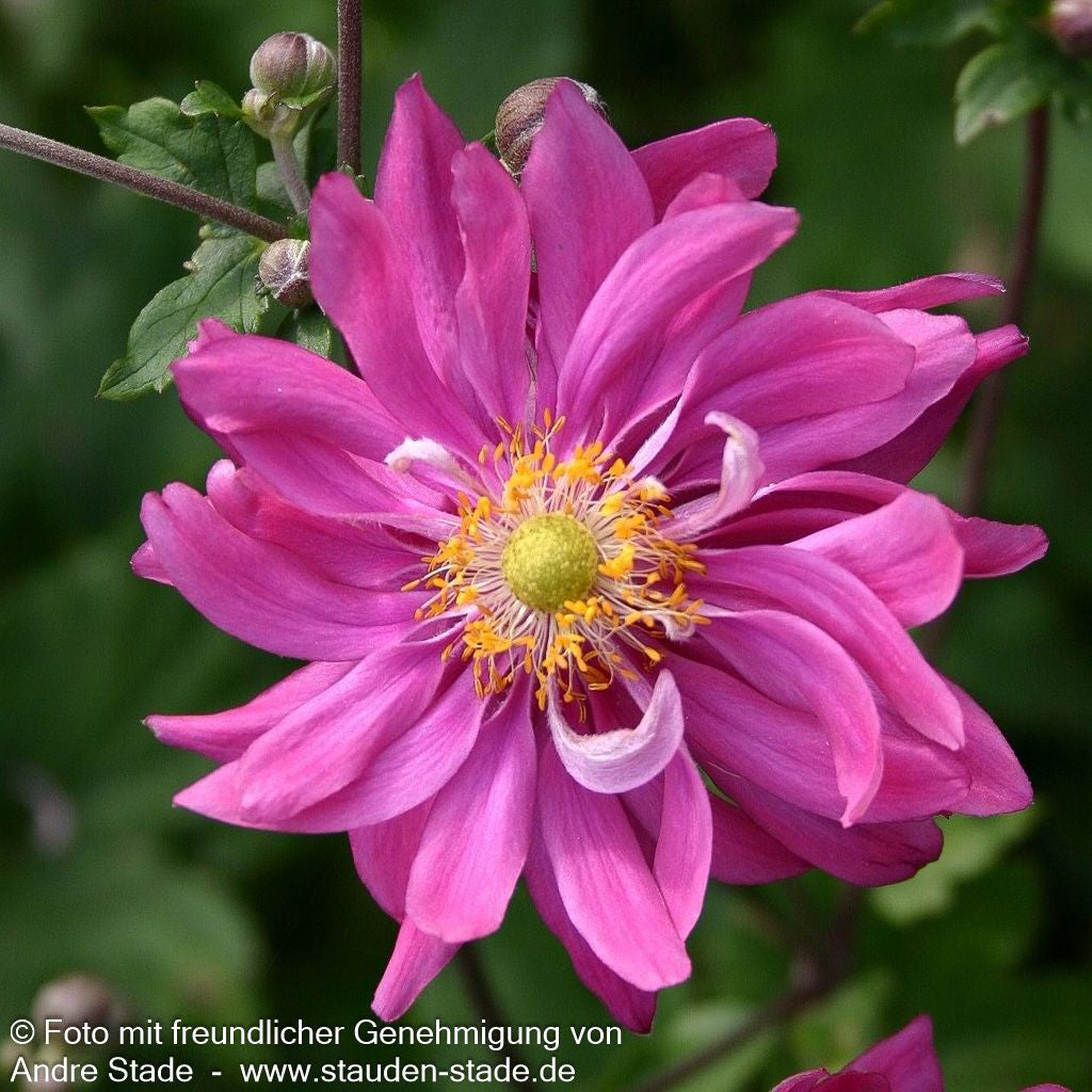 Die Herbst-Anemone (Anemone japonica 'Bressingham Glow') verzaubert mit ihren purpurrosa gefüllten Blüten und wurde nicht ohne Grund zur Staude des Jahres 2005 gekürt. Diese elegante Sternensorte erreicht eine beeindruckende Blütenhöhe von 80 bis 100 cm und blüht von August bis Oktober. Mit ihren tief-grünen, sommergrünen Blättern und der ausladenden Wuchsform gedeiht sie optimal an halbschattigen Standorten mit frischem Boden. Diese winterharte Staude ist perfekt für den Bauerngarten, als Insektennährpflanze und für die Floristik geeignet – ein echter Allrounder für anspruchsvolle Gärtner!