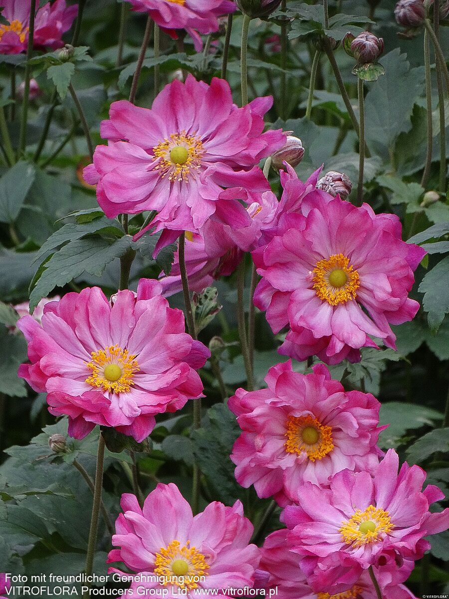 Die Herbst-Anemone (Anemone japonica 'Prinz Heinrich') verzaubert mit ihren purpurroten, gefüllten Blüten jeden Garten und wurde nicht umsonst zur Staude des Jahres 2005 gekürt. Diese ausdrucksstarke Staude erreicht eine Blütenhöhe von 60 bis 80 cm und blüht von August bis Oktober in leuchtenden purpurrosa Tönen. Mit ihrem aufrechten Wuchs und grundständigem Blattschopf sowie den tief-grünen, sommergrünen Blättern ist sie eine perfekte Insektennährpflanze für halbschattige Standorte. Diese robuste winterharte Staude gedeiht hervorragend als Gehölzrandstaude und eignet sich sowohl für den Bauerngarten als auch für Schnittzwecke, wobei ein Pflanzabstand von 40 bis 50 cm optimal ist.