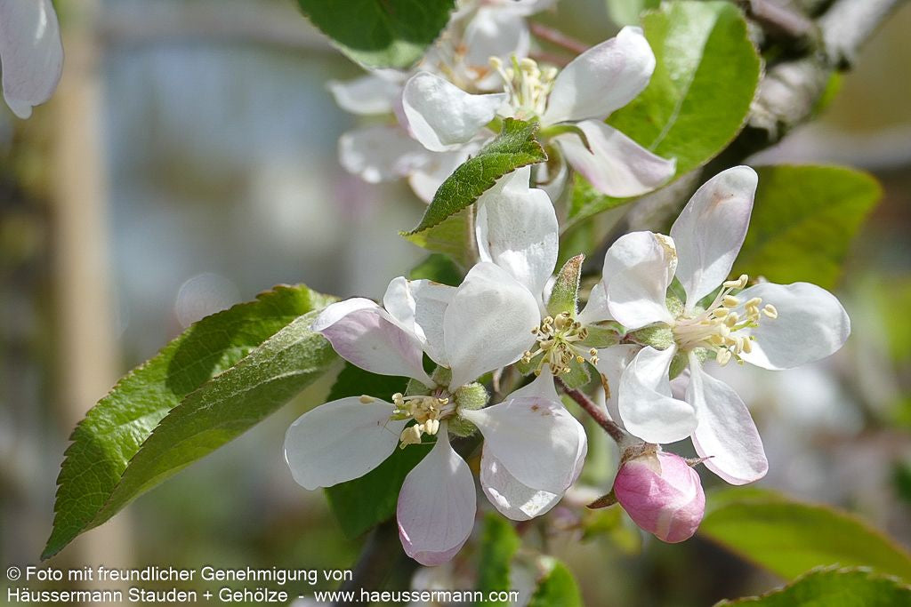 Der Herbstapfel Malus 'Rubinola' ist eine besonders robuste und schorfresistente Apfelsorte aus Tschechien, die Hobbygärtner mit ihren karminroten, süß-säuerlich würzigen Früchten begeistert. Dieses vitaminreiche Laubgehölz blüht von April bis Mai in zauberhaften weißen Blüten und entwickelt dunkelgrünes, sommergrünes Laub. Die Erntezeit beginnt im September, und die festen, feinzelligen Äpfel sind bis Januar haltbar. An sonnigen bis halbschattigen Standorten gedeiht dieser kulinarisch bedeutsame Apfelbaum optimal und dient gleichzeitig als wertvolle Insektennährpflanze und Vogelnährpflanze – eine perfekte Wahl für den naturnahen Obstgarten.