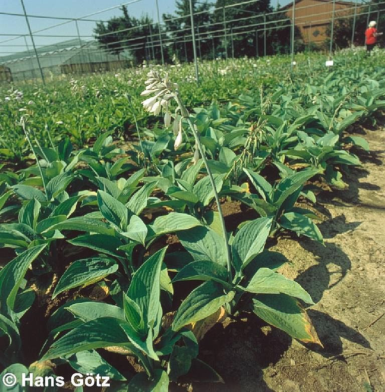 Die Hohe Funkie (Hosta sieboldiana 'Blue Mammoth') ist eine beeindruckende Staude, die mit ihrer imposanten Größe und den charakteristischen blaugrauen Blättern jeden Garten bereichert. Diese prächtige Sorte entwickelt ein 60-100 cm hohes Blattwerk mit besonderer Blattform und Textur und erreicht zur Blütezeit eine Höhe von 100-130 cm. Von Juli bis August schmücken weißliche, einfache Blüten die Pflanze und bilden einen reizvollen Kontrast zum blaugrauen Laub. Diese stark wachsende und ausladend wachsende Leitstaude gedeiht optimal an halbschattigen bis schattigen Standorten mit frischem Boden und eignet sich hervorragend als Gehölzrandstaude oder für Pflanzungen zu Rhododendron. Mit ihrer Winterhärte bis -28°C ist diese Staude des Jahres 2009 eine dauerhafte Bereicherung für jeden Garten.