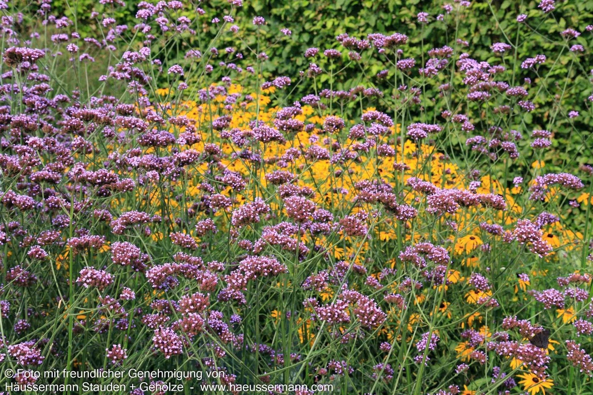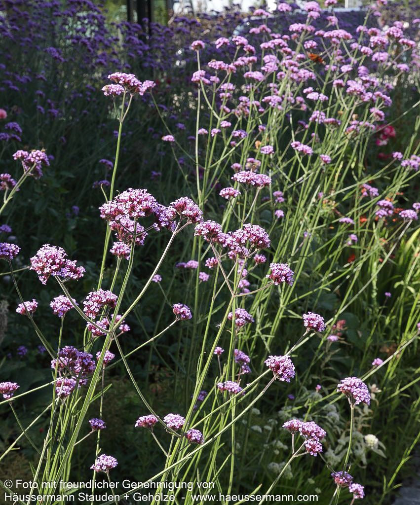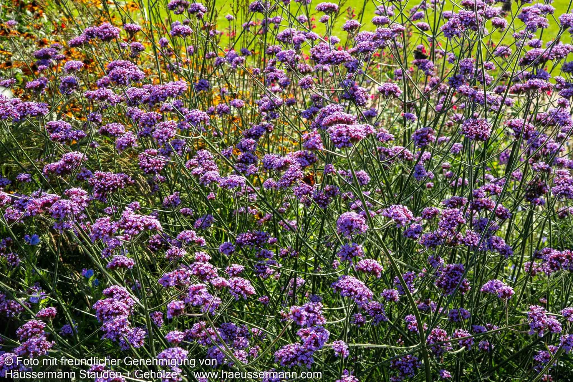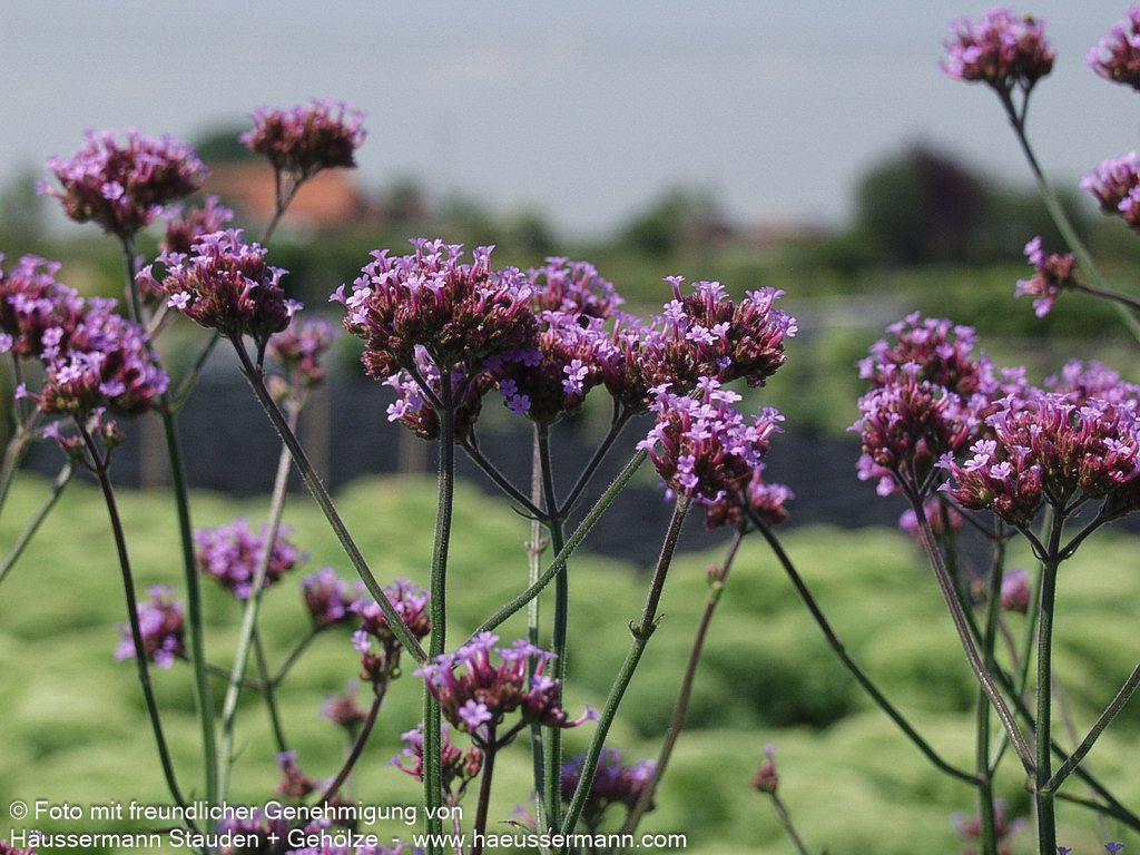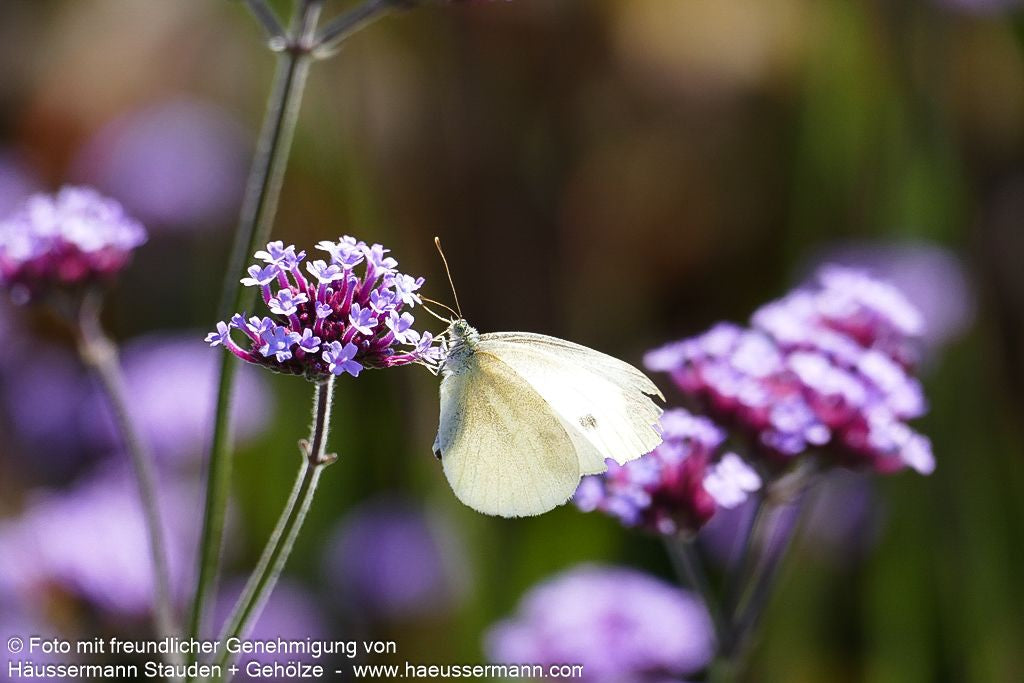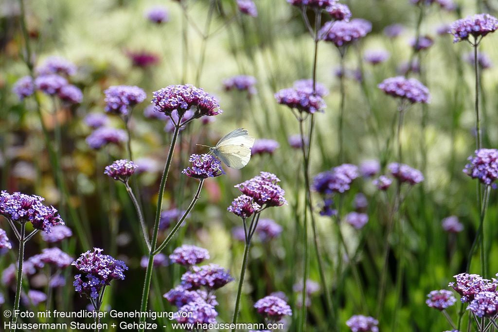 Das Hohe Eisenkraut (Verbena bonariensis) verzaubert jeden Garten mit seinen charakteristischen blauvioletten Blüten, die von Juli bis Oktober in einer beeindruckenden Höhe von 80 bis 120 cm schweben. Diese elegante Staude gedeiht optimal an sonnigen Standorten auf trockenen Böden und etabliert sich als wertvolle Insektennährpflanze in naturnahen Gärten. Als Gerüststaude setzt sie mit ihren luftigen, einfachen Blütendolden vertikale Akzente zwischen niedrigeren Pflanzen. Die fremdländische Schönheit mit den frisch grünen Blättern ist zudem kulinarisch bedeutsam und überrascht als bedingt winterharte Ein- bis Zweijährige mit ihrer Anpassungsfähigkeit bis zur Winterhärtezone Z8.