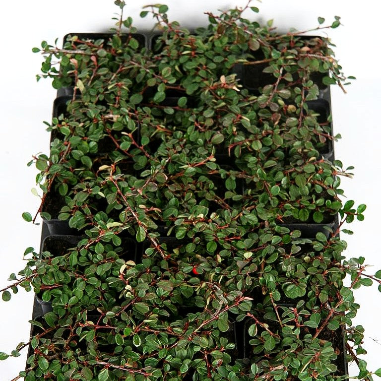 Die Immergrüne Teppichmispel (Cotoneaster dammeri 'Evergreen') ist ein äußerst vielseitiger Bodendecker, der mit seinem flach niederliegenden Wuchs bis maximal 15 cm Höhe jede Fläche zuverlässig begrünt. Als kleinflächiger Bodendecker aus der Kategorie der Zwerggehölze überzeugt dieses robuste Gehölz mit seinem kleinen, wintergrünen Laub, das ganzjährig für einen gepflegten Anblick sorgt. Im Juni erscheinen zahlreiche weiße Blüten, die Bienen und andere Insekten magisch anziehen. Ab August entwickeln sich leuchtend rote Früchte, die nicht nur dekorativ wirken, sondern auch Vögeln als wertvolle Nahrungsquelle dienen. Die anspruchslose Teppichmispel gedeiht an sonnigen, halbschattigen und absonnigen Standorten auf frischen Böden. Ob im Steingarten, als Hangbefestigung oder für die Grabbepflanzung – dieser pflegeleichte Dauerblüher ist die ideale Wahl für Ihren kleinen Garten in der Sonne oder im Halbschatten.
