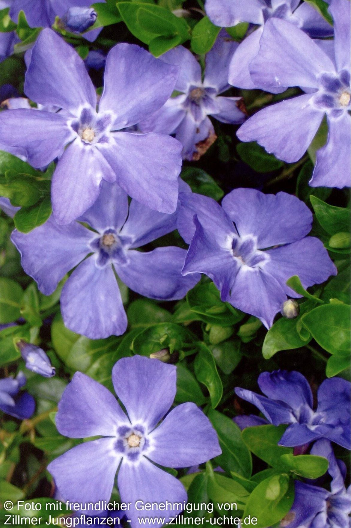 Das Kleinblättrige Immergrün (Vinca minor 'Marie') ist eine bezaubernde Züchtung, die mit ihren violettblauen Blüten von April bis Mai jeden Garten bereichert. Diese robuste Staude entwickelt sich zu einem perfekten großflächigen Bodendecker mit flach ausgebreitetem, ausläuferbildendem Wuchs. Die 10-12 cm hohen, einfachen Blüten kontrastieren wunderschön zu den grünen, wintergrünen Blättern. Ideal für halbschattige bis schattige Bereiche unter Gehölzen und als Begleiter zu Rhododendron. Mit ihrer Winterhärte bis -22°C und der Eignung für Grabstätten ist diese pflegeleichte Staude eine ausgezeichnete Wahl für dauerhafte Gartenschönheit.