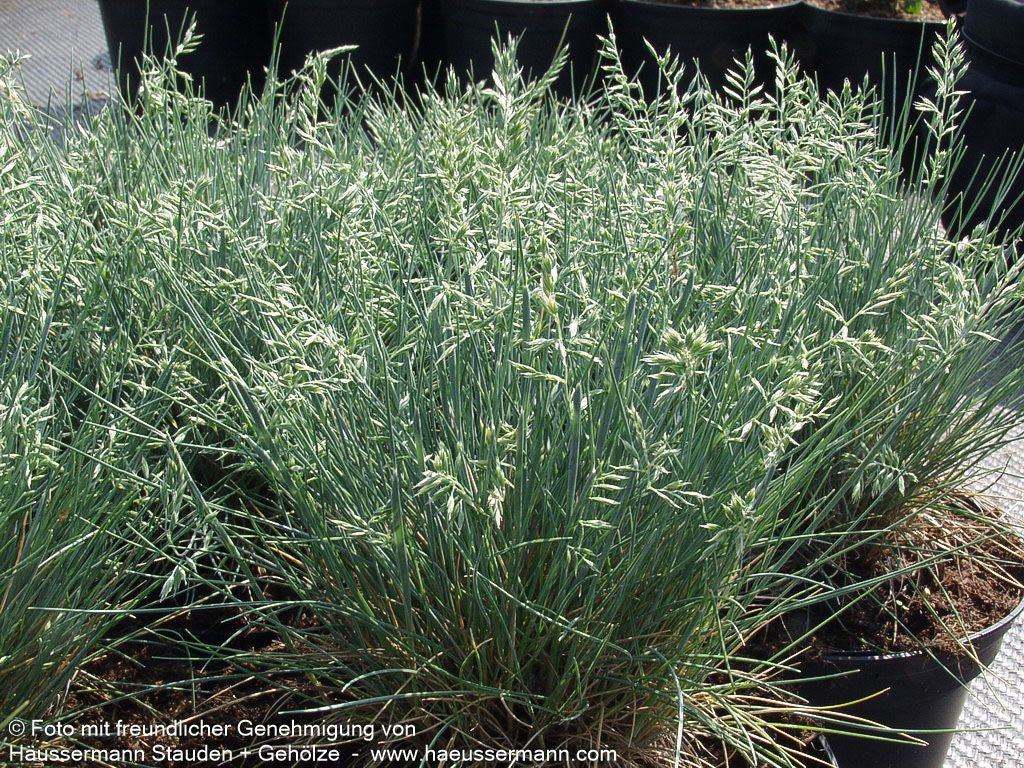 Der Kleine Blau-Schwingel (Festuca valesiaca 'Zwergenkönig') ist ein bezauberndes Ziergras, das mit seinem kompakten, polsterartigen Wuchs und den charakteristischen blaugrauen Blättern jeden Garten bereichert. Dieses winterharte Gras erreicht eine Blattwerkhöhe von nur 10 cm und entwickelt von Juni bis Juli unscheinbare, aber elegante gelblichbraune Blütenstände auf 15 cm hohen Halmen. Der 'Zwergenkönig' gedeiht optimal an sonnigen Standorten mit trockenem Boden und ist perfekt für Steinanlagen, Felssteppe und Matten geeignet. Seine blaugrauen, wintergrünen Blätter sorgen ganzjährig für Struktur und Farbe, während die robuste Natur dieses Züchtungserfolgs ihn ideal für die extensive Dachbegrünung macht.