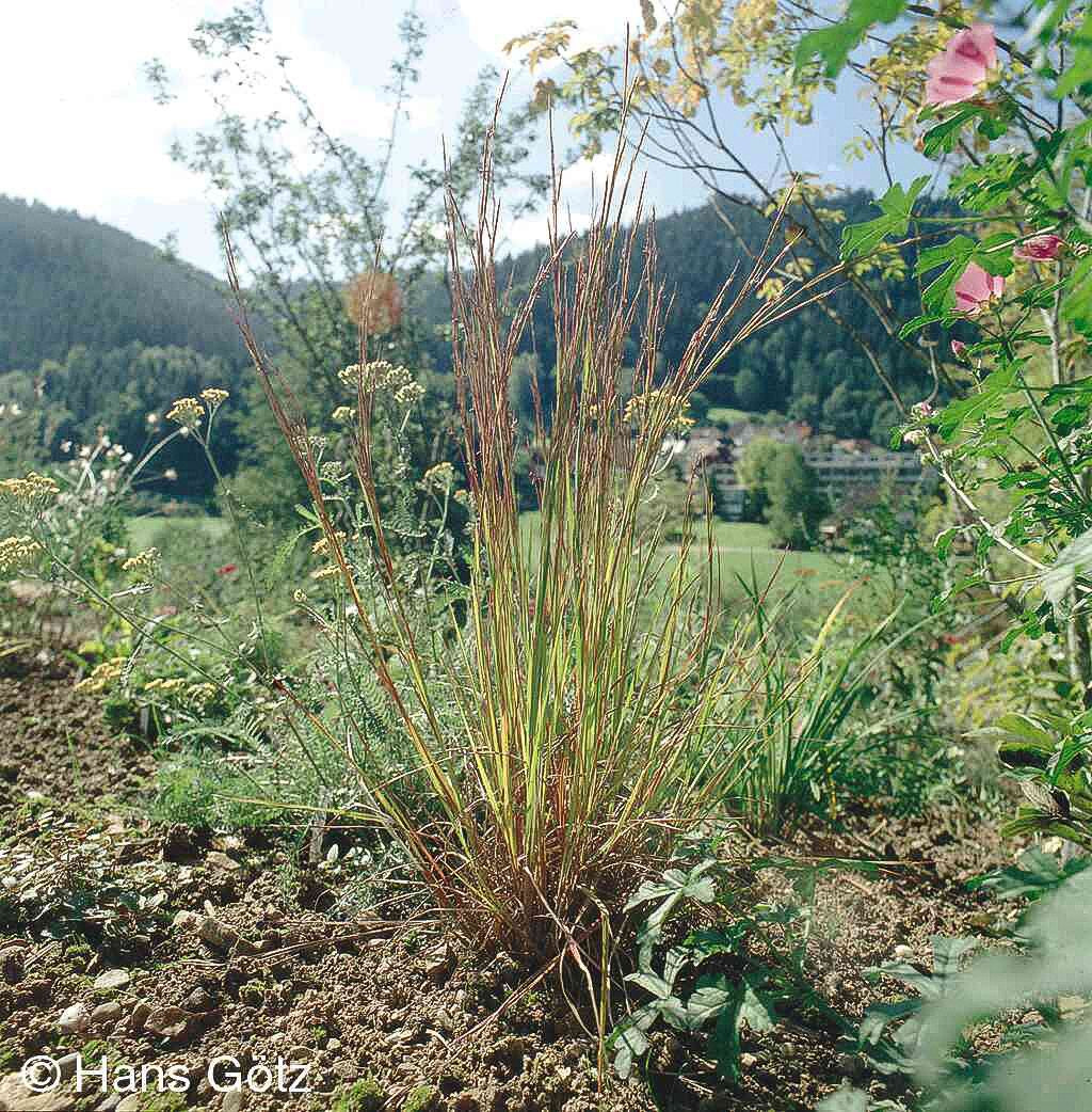 Das Kleine Präriegras (Schizachyrium scoparium) ist eine außergewöhnliche Grasstaude, die mit ihrer natürlichen Eleganz jeden Garten bereichert. Diese prämierte Sorte entwickelt von Juni bis Oktober bräunliche Blütenstände, die eine Höhe von bis zu 100 cm erreichen. Das sommergrüne Laub zeigt sich in attraktiven grünen Tönen und verwandelt sich im Herbst in eine spektakuläre Herbstfärbung. Als robuste Freiflächenstaude gedeiht sie optimal an sonnigen Plätzen und toleriert sowohl trockene als auch frische Böden. Mit ihrer Winterhärte bis -28°C und der Eignung für extensive Dachbegrünungen ist dieses nordamerikanische Präriegras eine pflegeleichte und nachhaltige Bereicherung für naturnahe Pflanzungen.