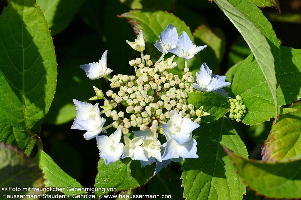 Kleinwüchsige Teller-Hortensie 'Blue Deckle' (Hydrangea serrata)