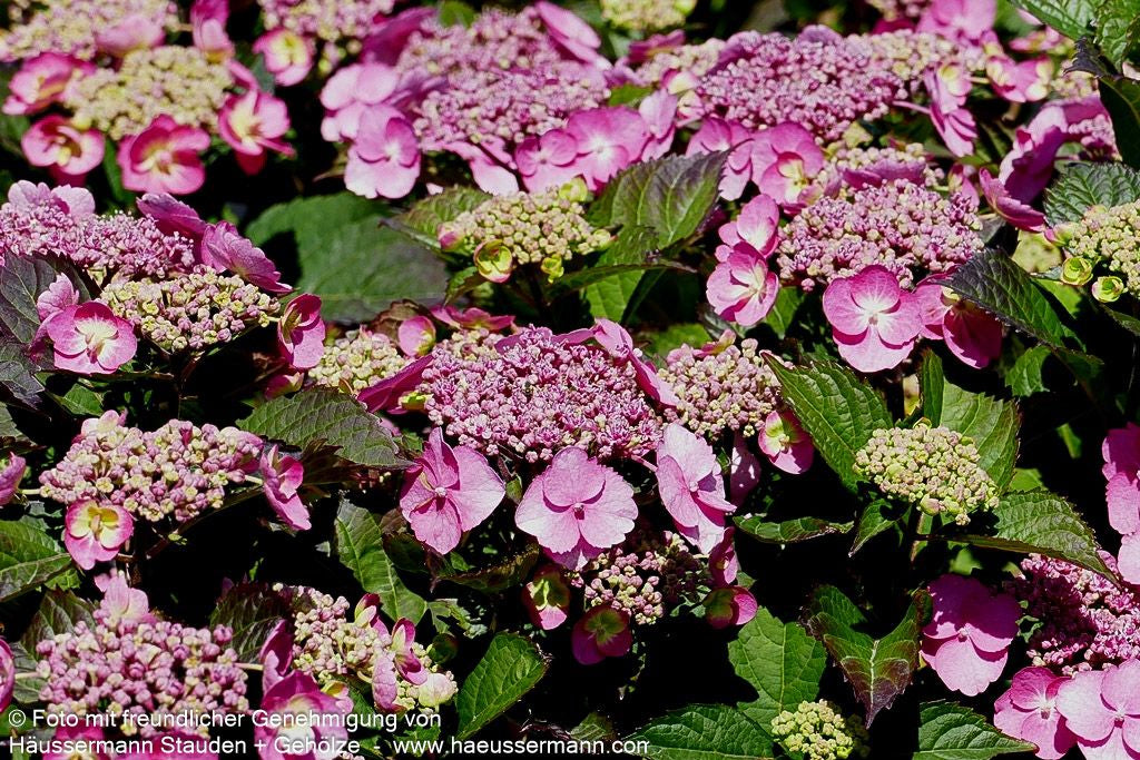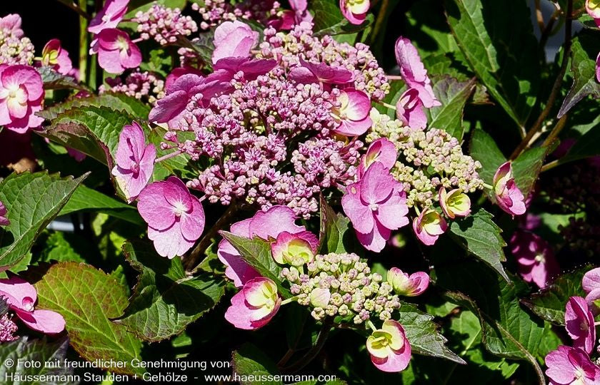 Kleinwüchsige Teller-Hortensie 'Cotton Candy' (Hydrangea serrata)
