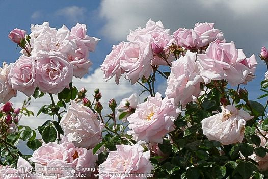 Die Kletterrose 'New Dawn' (Rosa 'New Dawn' KL V) ist eine außergewöhnliche Kletterpflanze, die 1997 zur Weltrose gekürt wurde und damit ihre herausragende Qualität unter Beweis stellt. Diese robuste Kletterrose begeistert von Juni über Juli, August und September bis in den Oktober hinein mit ihren halbgefüllten Blüten in zart-rosa bis cremefarbenem Ton. Mit einer beeindruckenden Wuchshöhe von 300 cm und langen, überhängenden Trieben ist dieses Laubgehölz ideal für Pergolen, Zäune oder Hauswände geeignet. Besonders hervorzuheben ist der reichliche, intensive Duft, der den ganzen Garten in eine romantische Atmosphäre hüllt. Die Sorte zeigt eine gute bis mäßige Mehltauresistenz sowie eine gute bis mäßige Rußtauresistenz, was bei entsprechender Standortwahl für gesunde Blätter sorgt.