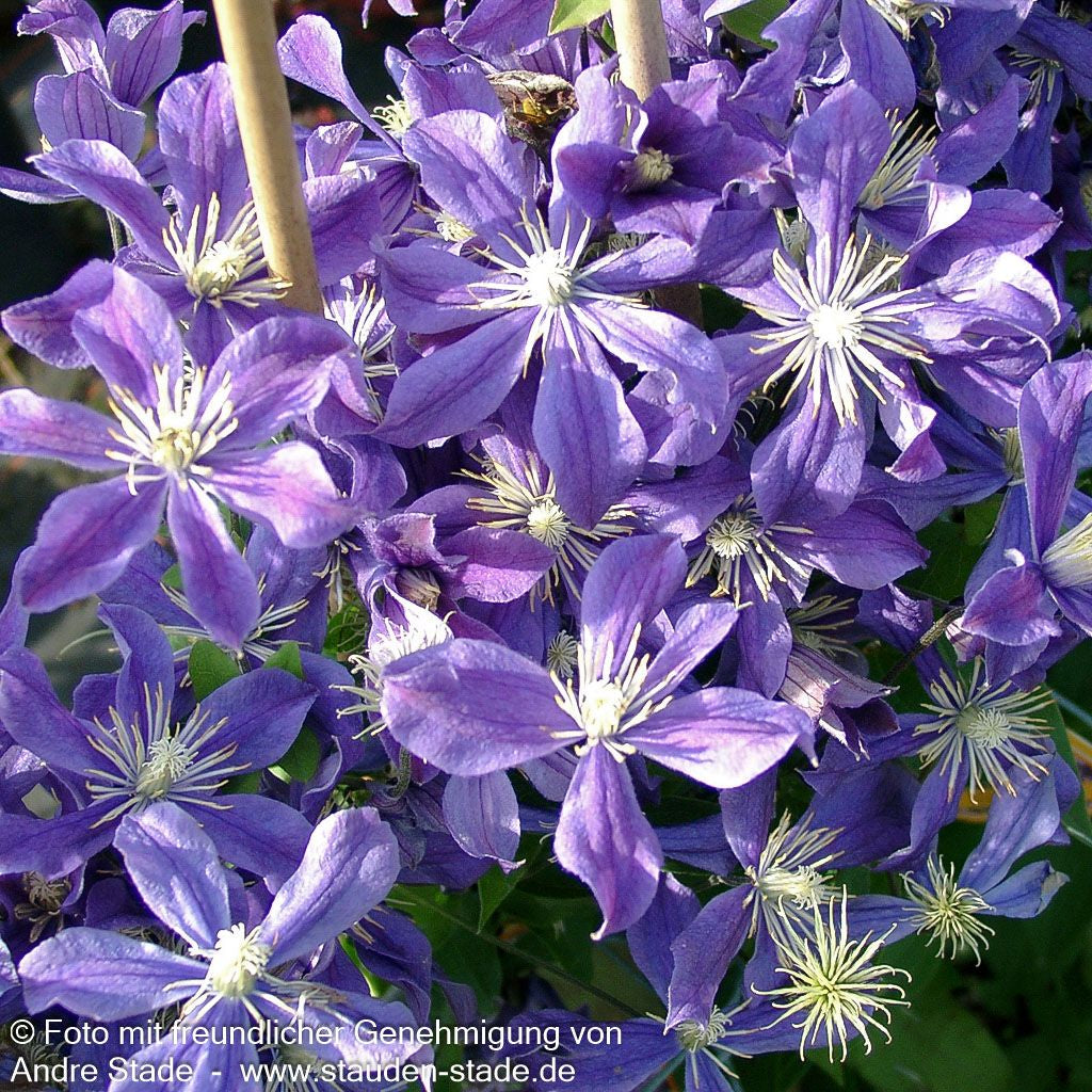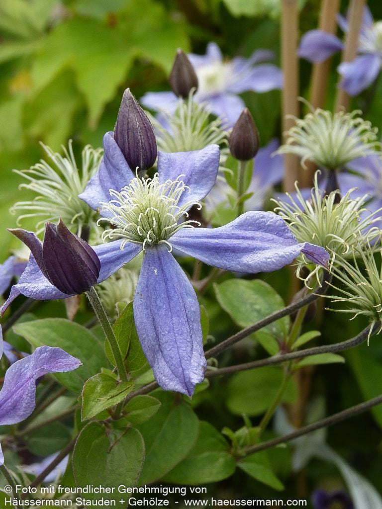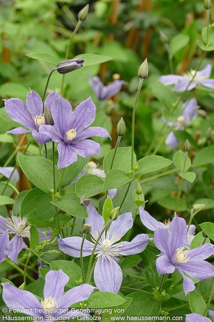 Die Krautige Waldrebe (Clematis integrifolia 'Arabella') ist eine außergewöhnliche Staude, die mit ihren 6-8 cm großen, blauvioletten Blüten von Juni bis September begeistert. Diese besondere Staudenclematis erreicht eine Höhe von 1,2-1,5 Metern und unterscheidet sich von klassischen Clematis dadurch, dass sie nicht klettert, sondern als Leitstaude im Beet überzeugt. Die winterharte Pflanze gedeiht optimal an sonnigen bis halbschattigen Standorten und toleriert sowohl trockene als auch frische Böden. Als Freiflächenstaude und Gehölzrandstaude eignet sie sich perfekt für vielseitige Gartengestaltung. Ein jährlicher tiefer Rückschnitt sorgt für vitales Wachstum und reiche Blütenfülle der sommergrünen Schönheit.