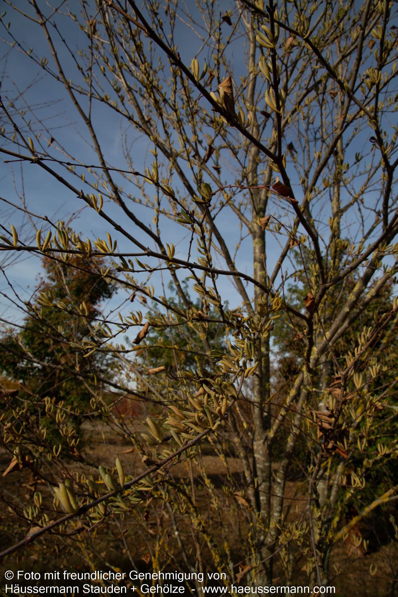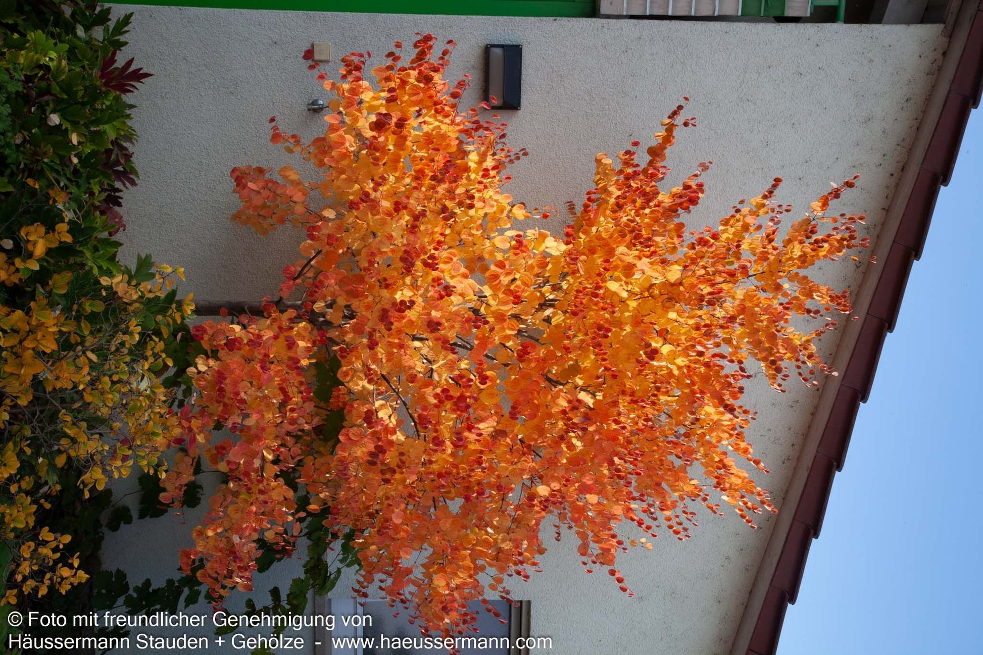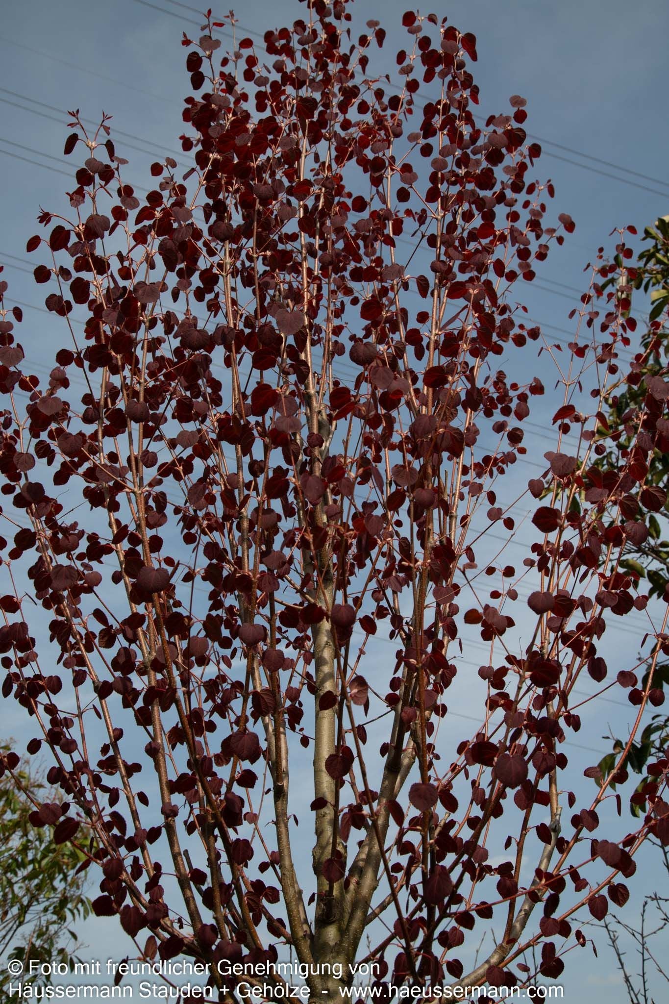Der Kuchenbaum (Cercidiphyllum japonicum) ist ein außergewöhnlicher Kleinbaum, der Ihren Garten mit einem wahren Sinneserlebnis bereichert. Dieser oft mehrstämmige Baum erreicht eine Höhe von 8-10 Metern und begeistert mit seiner schmal aufrechten, kegelförmigen Wuchsform. Besonders faszinierend sind die Blätter, die rötlich austreiben, sich zu einem frischen Grün entwickeln und im Herbst in ein spektakuläres Goldgelb bis Rot verwandeln - ein echtes herbstfärbendes Highlight mit besonderer Blattform. Das Besondere: Das Fallaub verströmt einen betörenden Duft nach Zimt und Karamel, der dem Baum seinen Namen verleiht. Die kleinen purpurroten Blüten erscheinen im April vor dem Laubaustrieb an älteren Exemplaren. Als sommergrünes Laubgehölz bevorzugt dieser Kleinbaum einen sonnigen Standort mit frischen Bodenverhältnissen und ist eine perfekte Wahl für alle, die ein Laubgehölz mit Charakter suchen.