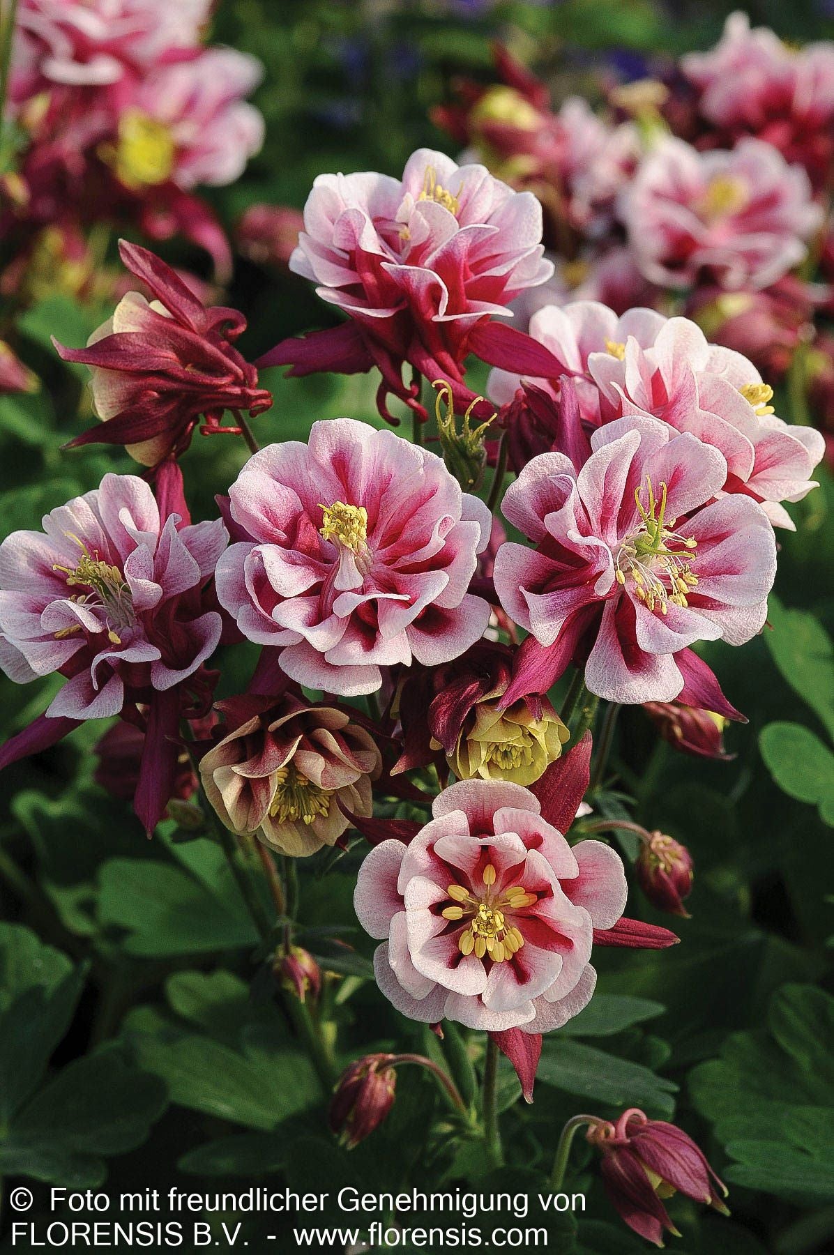 Kurzspornige Akelei 'Winky Rot-Weiß' (Aquilegia vulg., gefüllt)