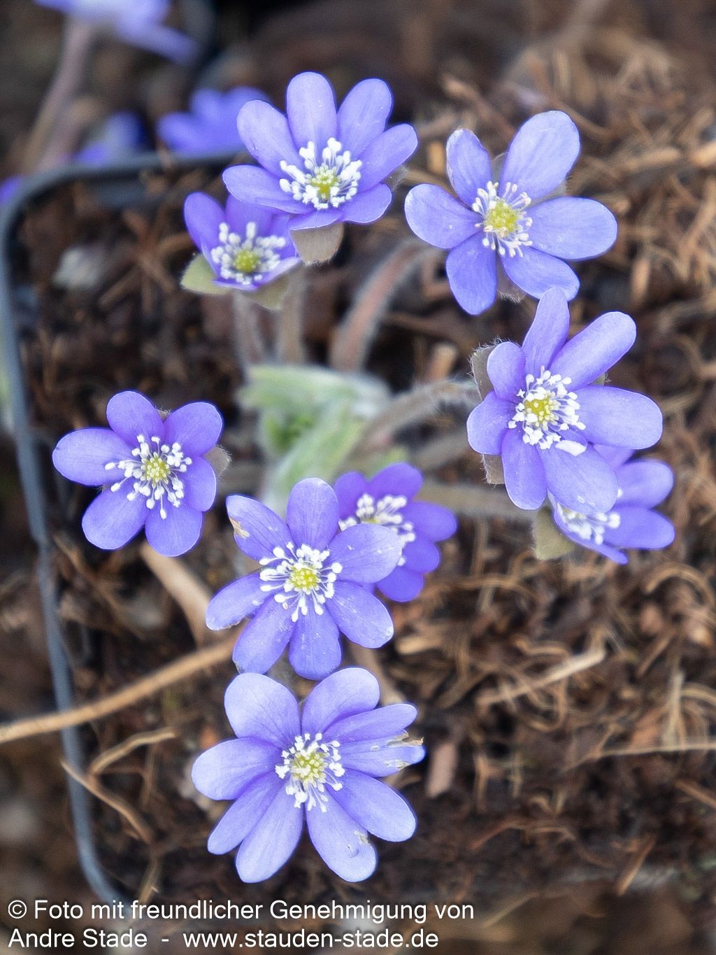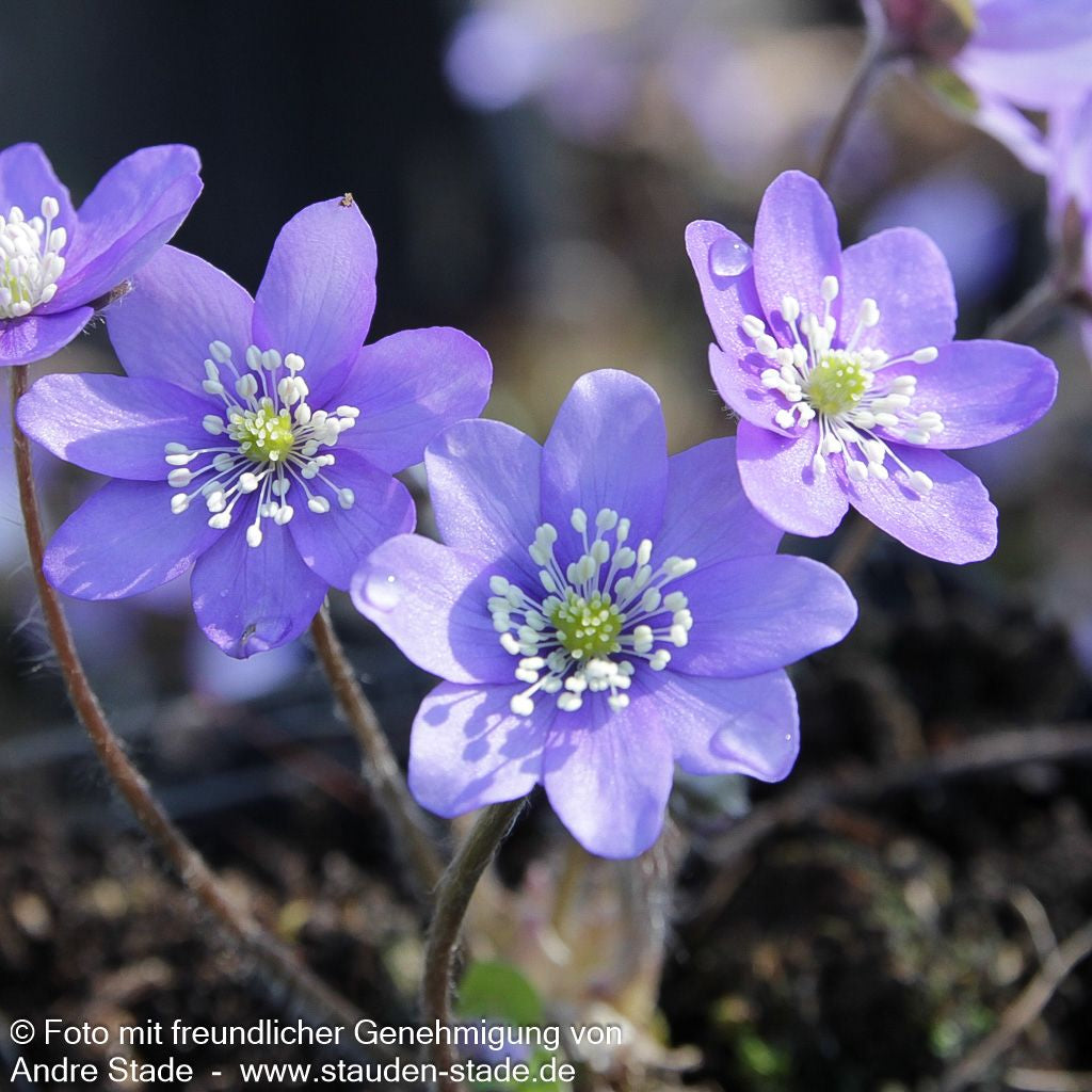 Das Leberblümchen (Hepatica nobilis) ist eine bezaubernde heimische Staude, die als einer der ersten Frühlingsboten mit ihren violettblauen, einfachen Blüten von März bis April begeistert. Diese winterharte Sternensorte der deutschen Staudensichtung entwickelt sich rosettenartig und erreicht eine kompakte Höhe von nur 10 cm. Die dunkel-grünen, wintergrünen Blätter sorgen das ganze Jahr für attraktive Struktur im Garten. Als wertvolle Insektennährpflanze gedeiht das Leberblümchen optimal an halbschattigen Plätzen unter Gehölzen oder als Gehölzrandstaude auf frischen Böden. Mit einem empfohlenen Pflanzabstand von 15-20 cm lassen sich wunderschöne Frühlingsteppiche gestalten, die Jahr für Jahr zuverlässig wiederkehren.
