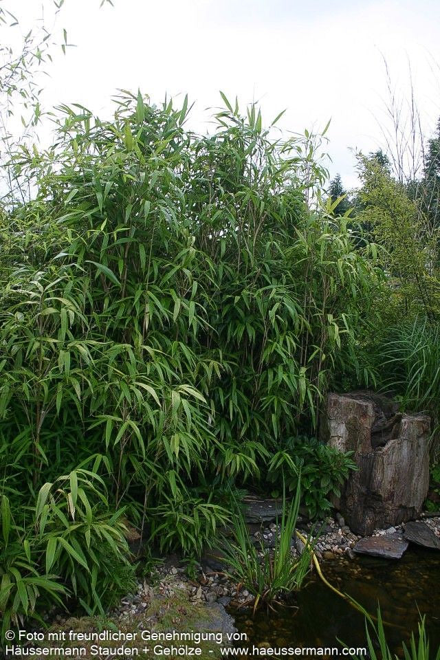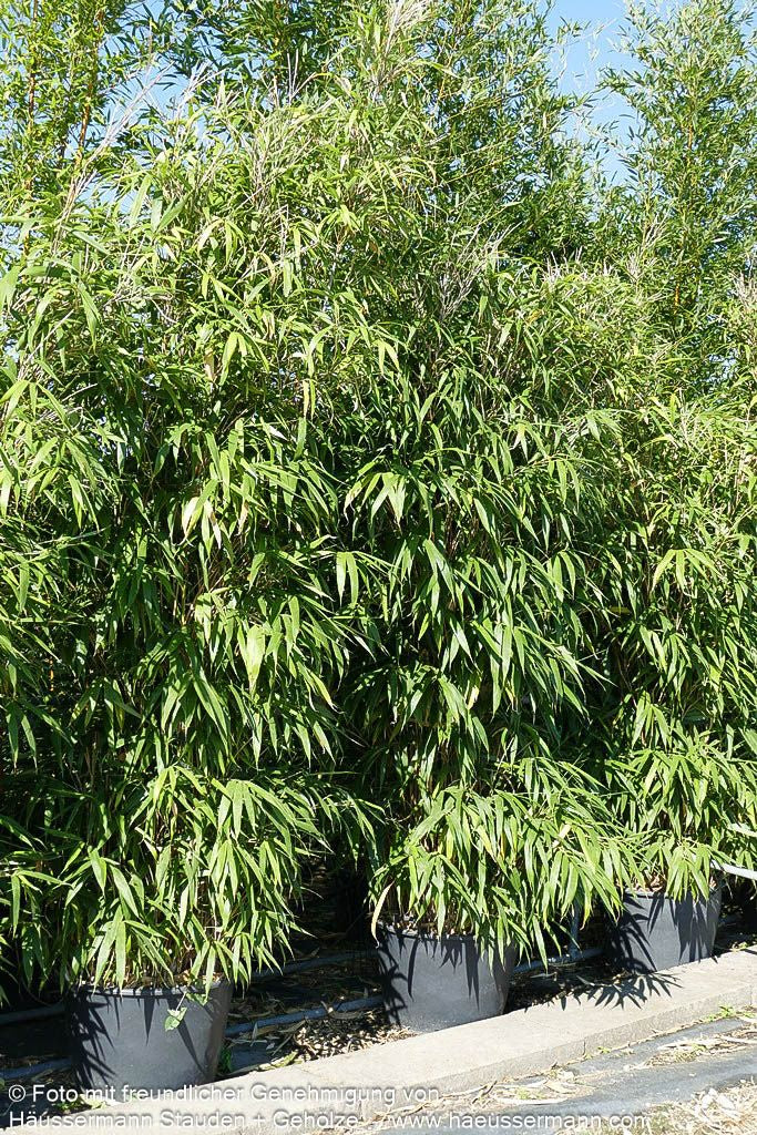 Der Mittelhohe Bambus (Pseudosasa japonica) ist ein eleganter Zierbambus, der mit seinem straff aufrechten Wuchs und den charakteristisch überhängenden Spitzen eine beeindruckende Gartenwirkung erzielt. Diese attraktive Laubgehölz-Art erreicht eine Höhe von 2-3 Metern und besticht durch ihre großen lanzettlichen, wintergrünen Blätter. Mit ihrer schmal aufrechten, kegelförmigen Wuchsform fügt sich dieser mittelhohe Bambus perfekt in moderne Gartengestaltungen ein. Der horstartig wachsende Bambus zeigt sich äußerst anpassungsfähig und gedeiht sowohl an sonnigen als auch halbschattigen, absonnigen bis schattigen Standorten. An den Boden stellt Pseudosasa japonica moderate Ansprüche und bevorzugt frische bis feuchte Verhältnisse. Wichtig: Aufgrund des leicht ausläufertreibenden Charakters sollten Sie eine Rhizomsperre installieren und einen windgeschützten Platz wählen.