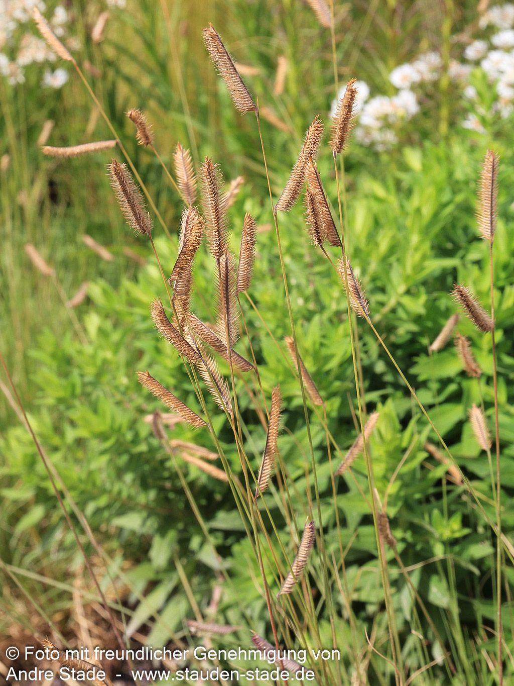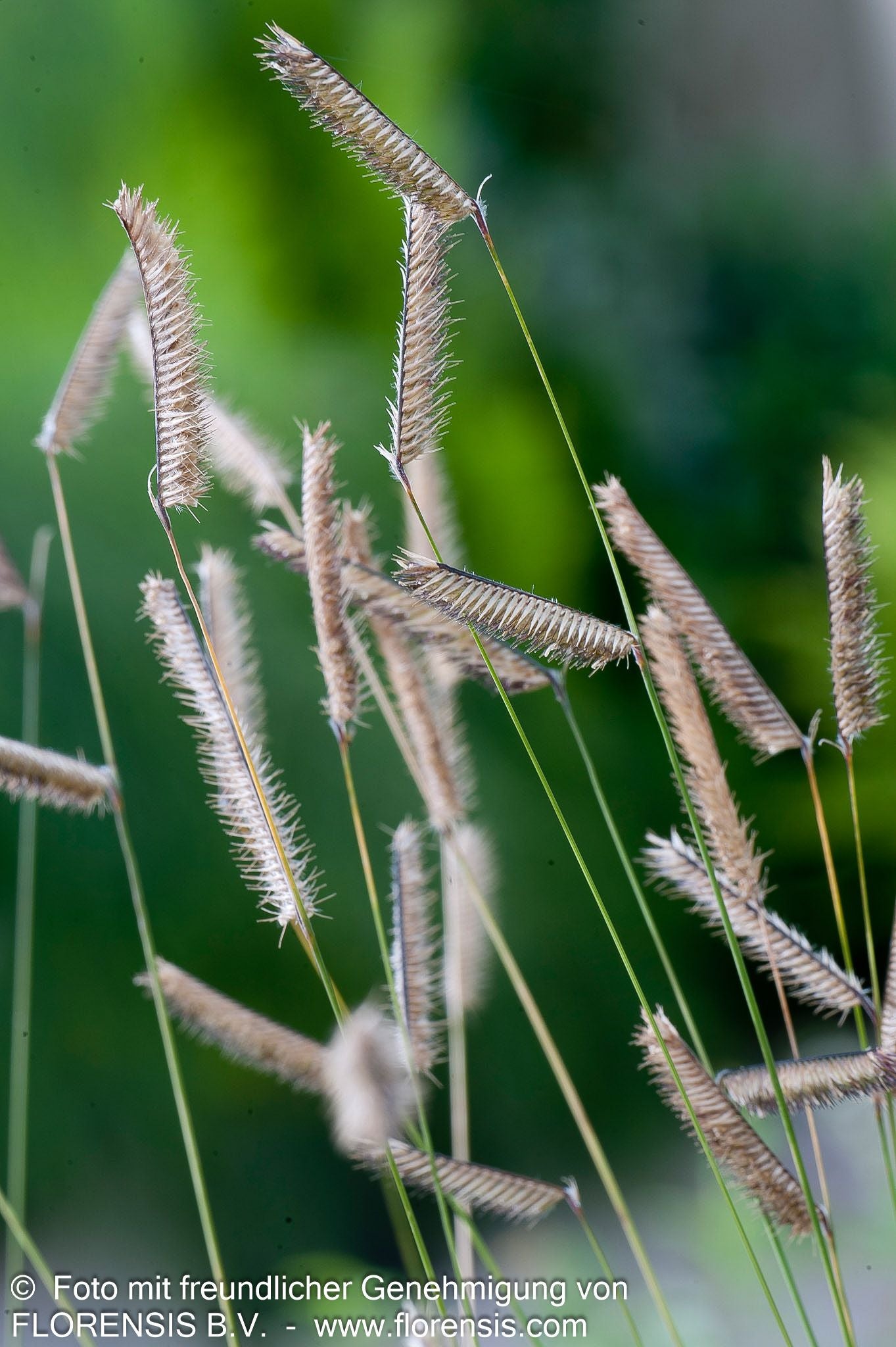 Das Moskitogras (Bouteloua gracilis) ist ein faszinierendes Ziergras aus der Familie der Gräser, das mit seiner außergewöhnlichen Erscheinung jeden Gartenliebhaber begeistert. Dieses robuste fremdländische Gras entwickelt aufrechte Stängel mit grundständigem Blattschopf und erreicht eine Blattwerkhöhe von 20 cm. Von Juli bis September schmückt es sich mit braunen Blütenständen, die eine Höhe von 25-40 cm erreichen und sich hervorragend für Schnittzwecke und Floristik eignen. Das bräunlichgrüne sommergrüne Laub bietet einen reizvollen Kontrast und entwickelt attraktiven Fruchtschmuck. Als eine der Sternesorten der deutschen Staudensichtung bevorzugt diese winterharte Pflanze sonnige Lagen mit trockenen Böden und eignet sich perfekt für Steppenheide-Bereiche, Freiflächenstauden-Pflanzungen oder die extensive Dachbegrünung.