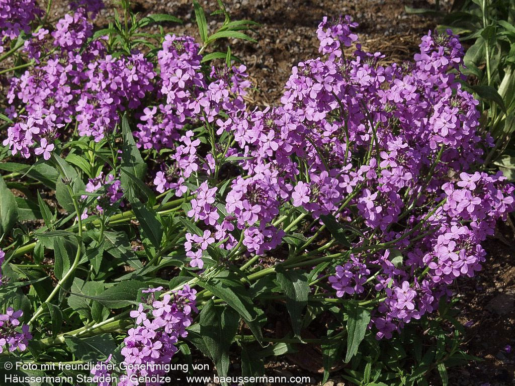 Die Nachtviole (Hesperis matronalis) ist eine bezaubernde heimische Staude, die mit ihren violetten, einfachen Blüten von Mai bis Juli für romantische Stimmung im Garten sorgt. Diese duftende Zweijährige erreicht eine Blütenhöhe von 60-70 cm und entwickelt eine buschig wachsende Form mit grünen, sommergrünen Blättern. Als Insektennährpflanze ist sie ein wertvoller Bestandteil naturnaher Gärten und gedeiht sowohl als Gehölzrandstaude als auch als Freiflächenstaude. Die winterharte Staude bevorzugt sonnige bis halbschattige Plätze mit frischen Böden und ist mit ihrer intensiven Blütenduftnote eine klassische Wahl für den Bauerngarten.